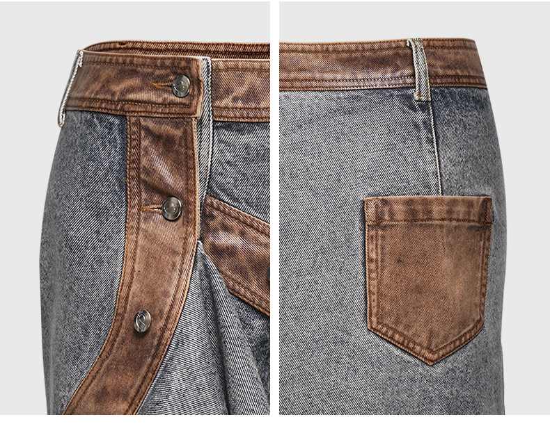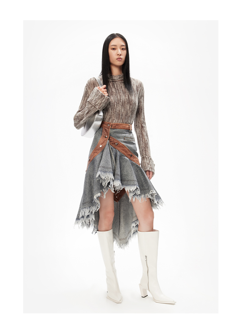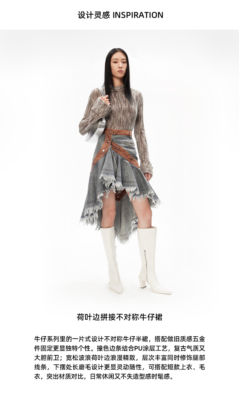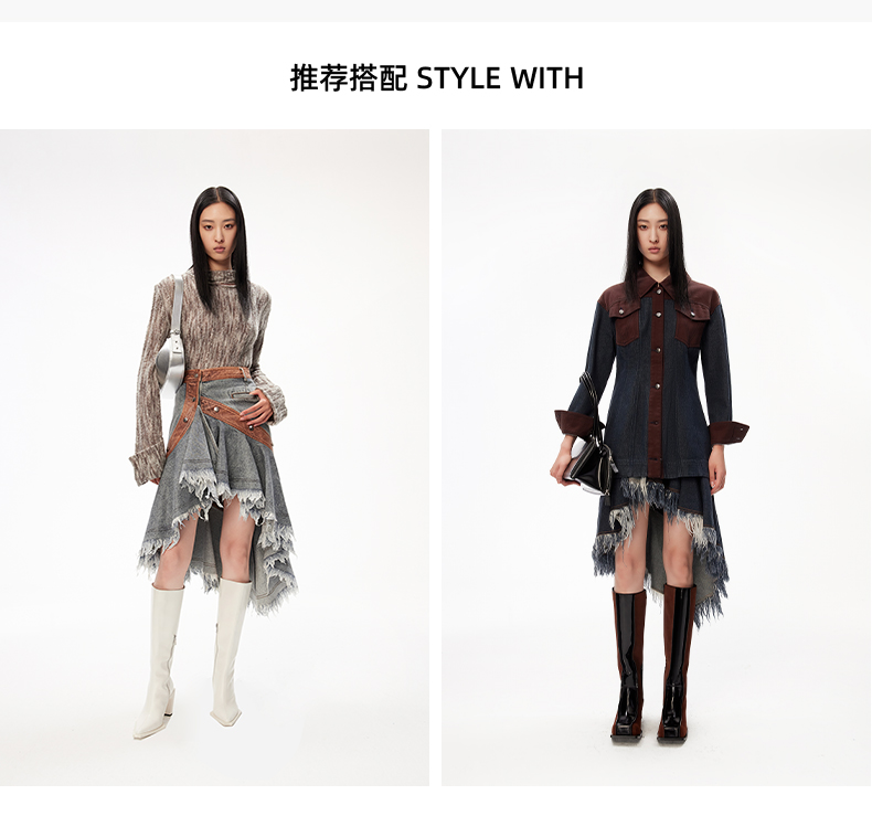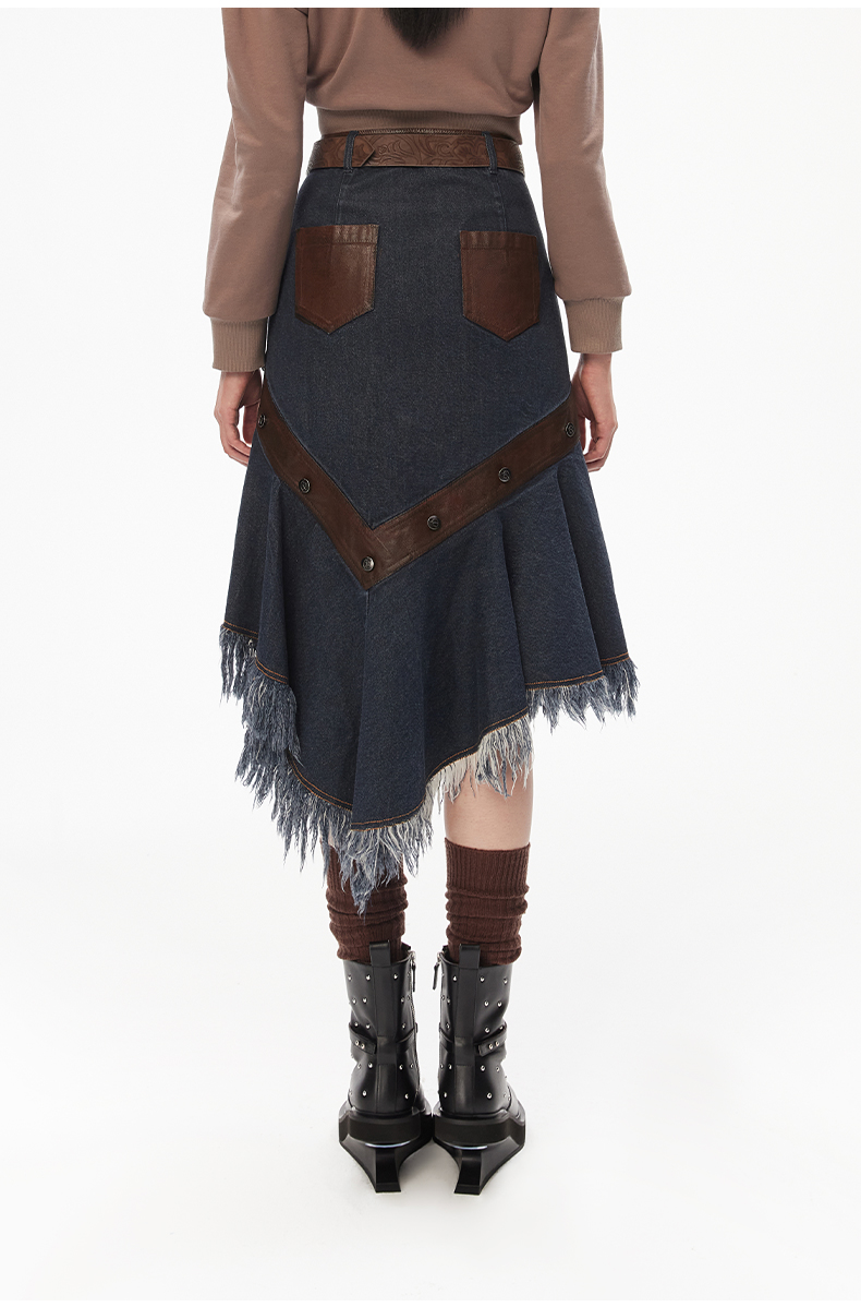 lost in echo设计师品牌小众撞色拼接流苏显瘦宽松半身裙牛仔短裙