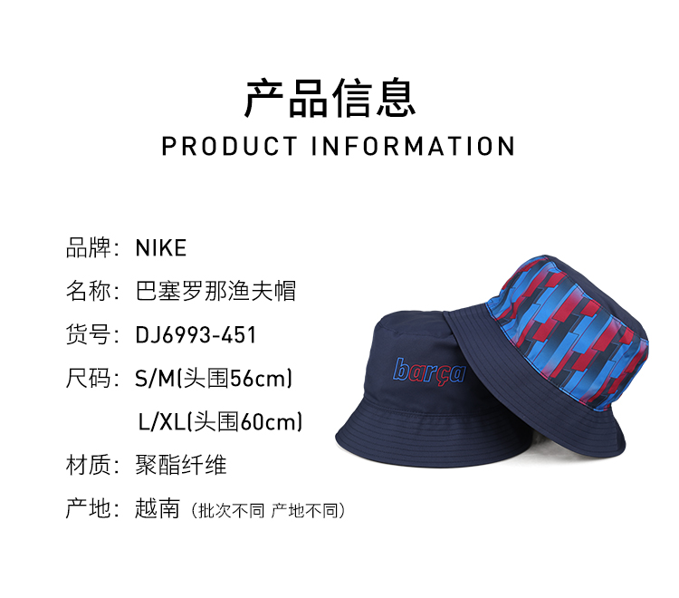 小李子:正品NIKE/耐克巴萨足球运动休闲百搭渔夫帽男DJ6993-451