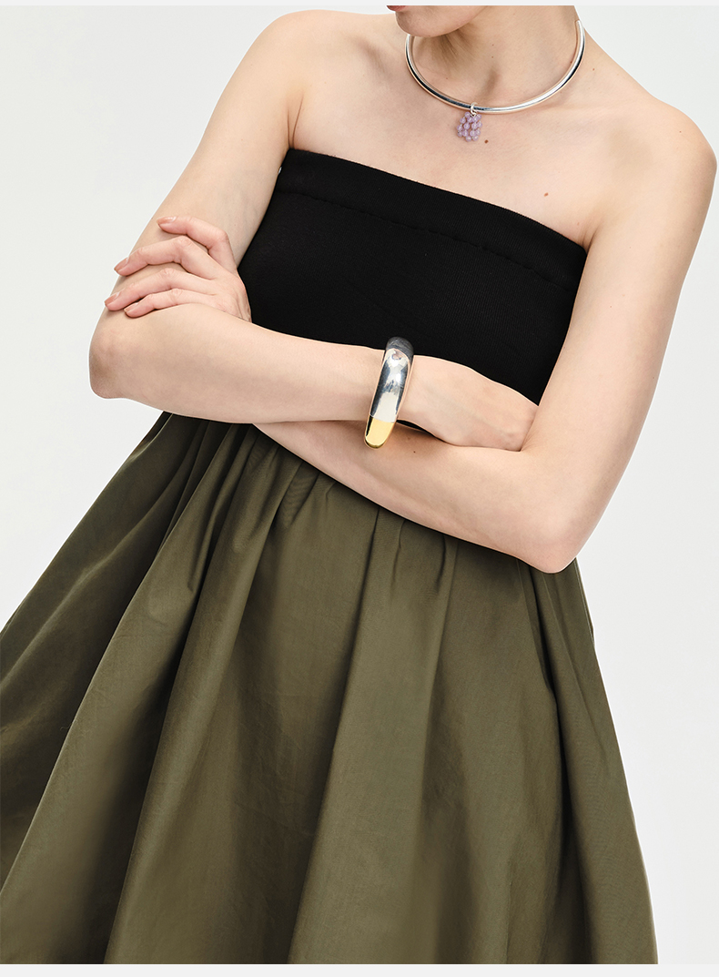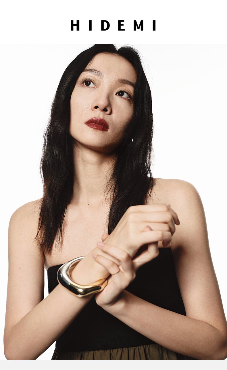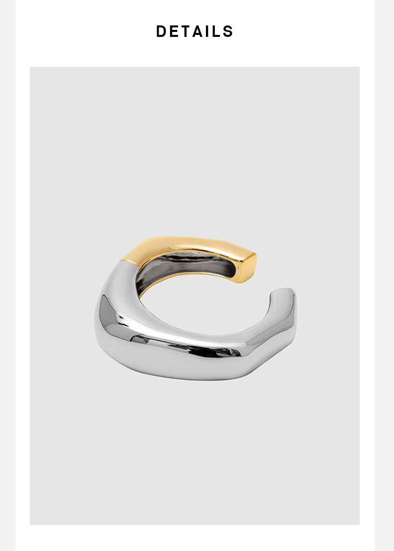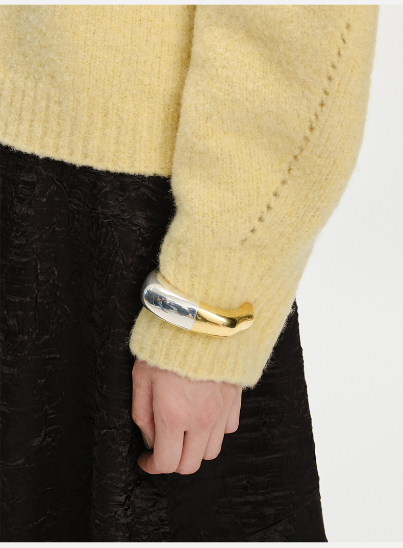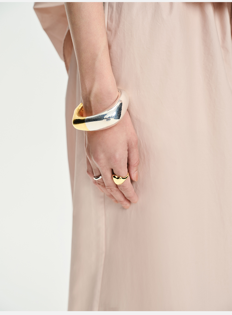HIDEMI 拼接流线感极简粗款开口手镯