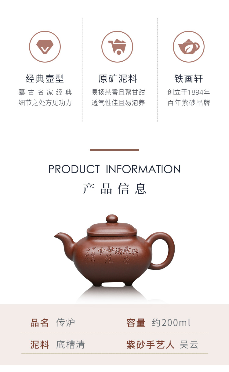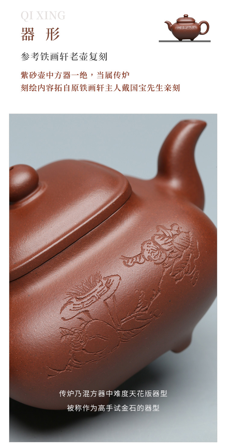 百年紫砂品牌铁画轩出品 底槽清 传炉壶紫砂壶