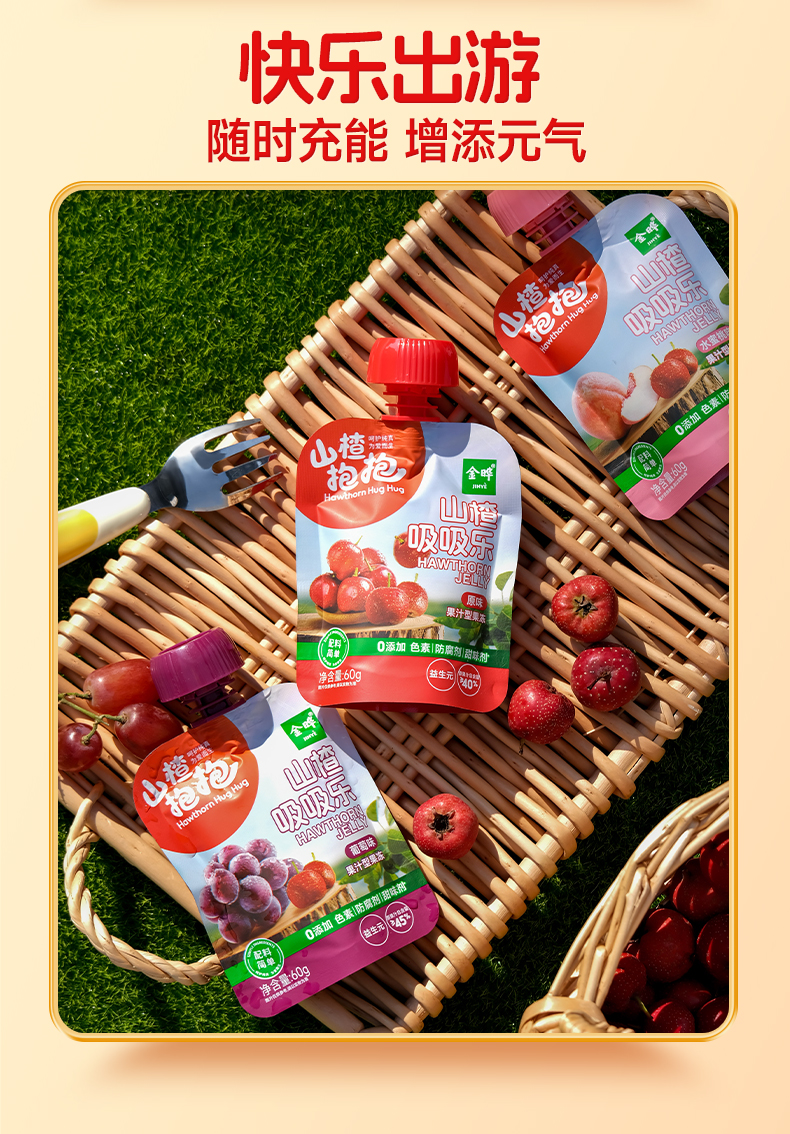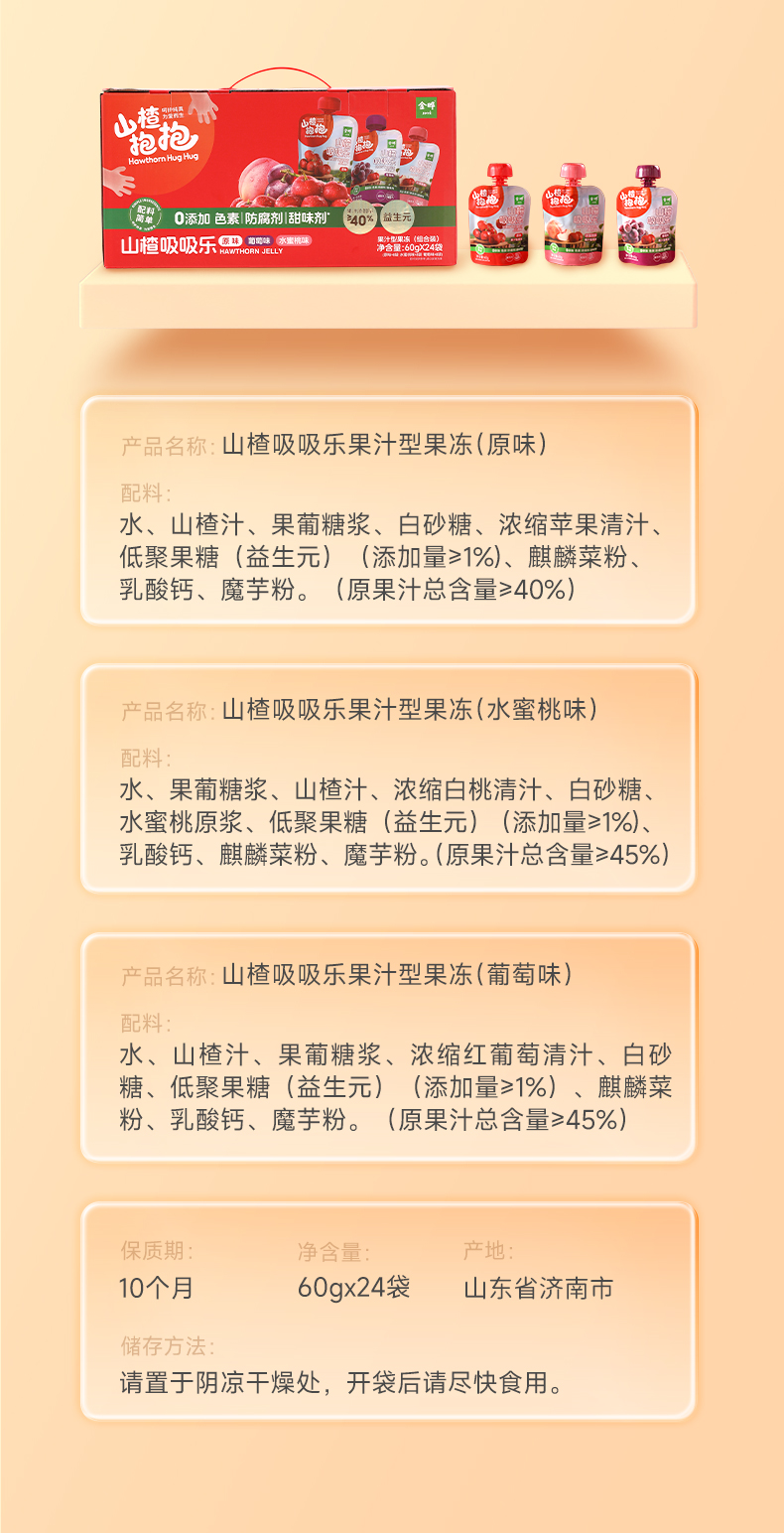金晔山楂抱抱果冻吸吸乐礼盒原味葡萄味草莓味整箱24袋多口味果冻