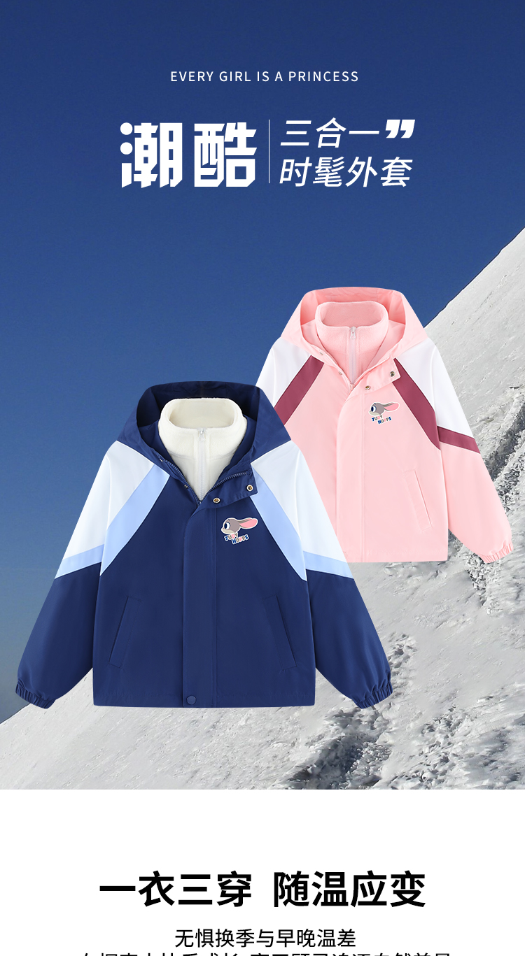 迪士尼女童外套秋季2024新款女大童棒球服春秋儿童上衣小女孩秋装