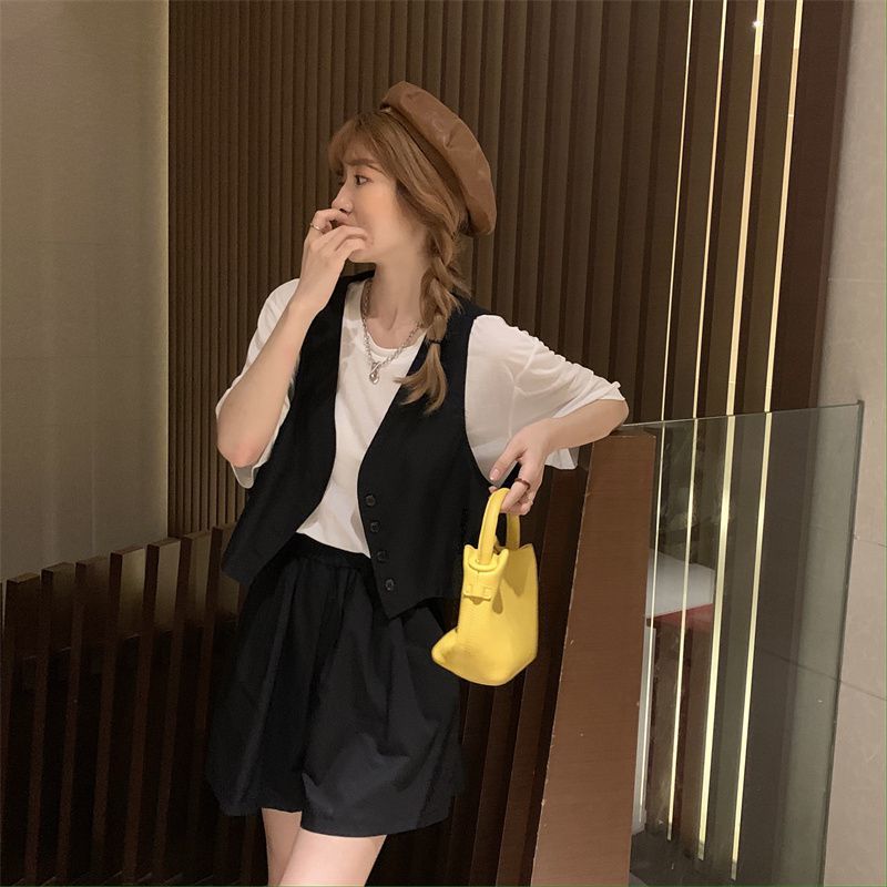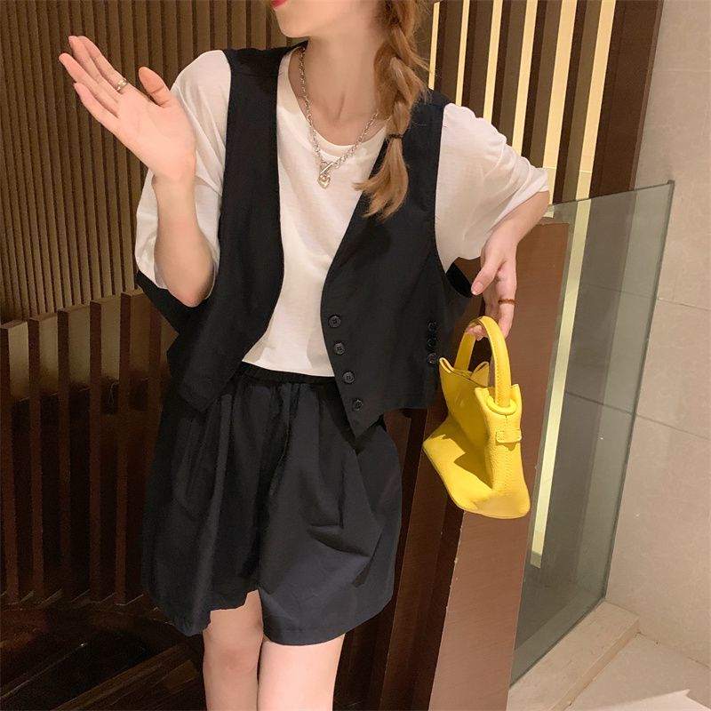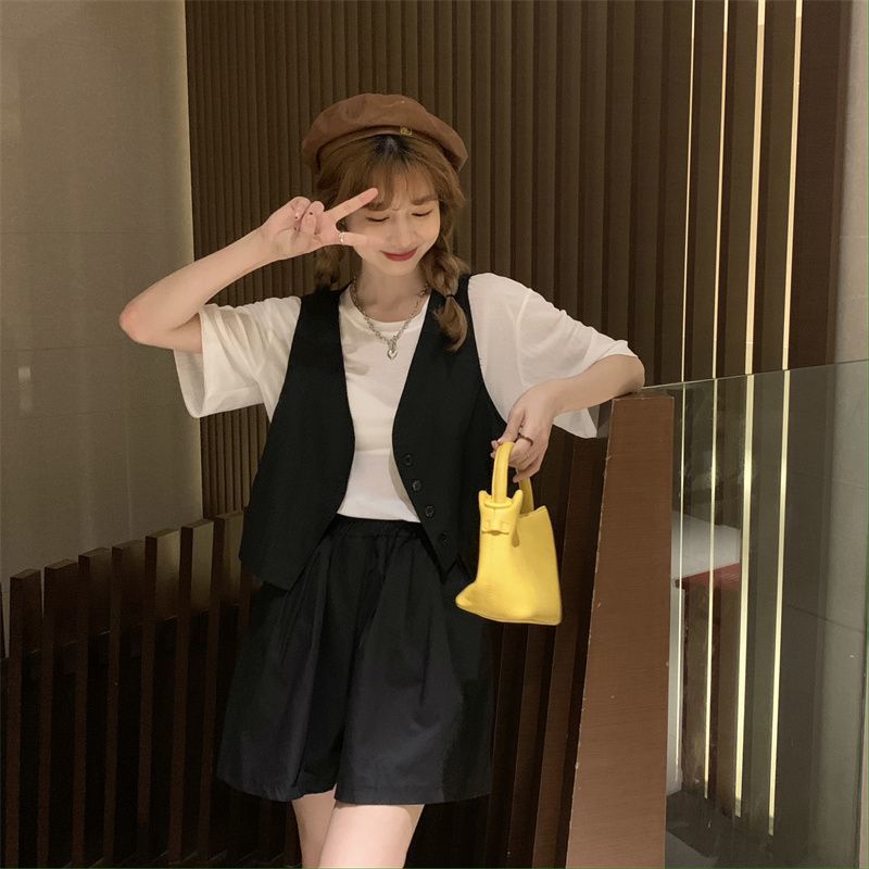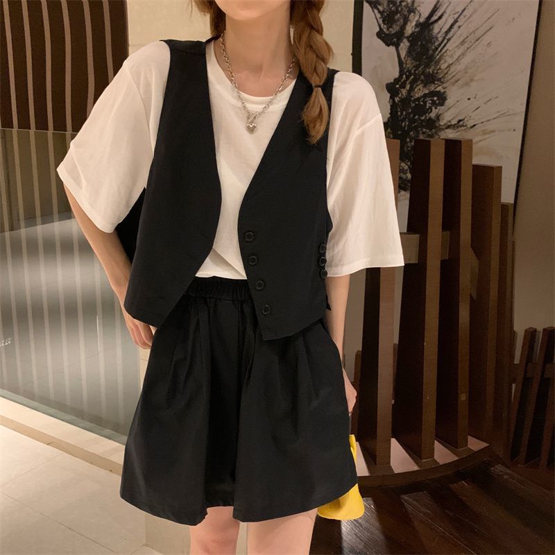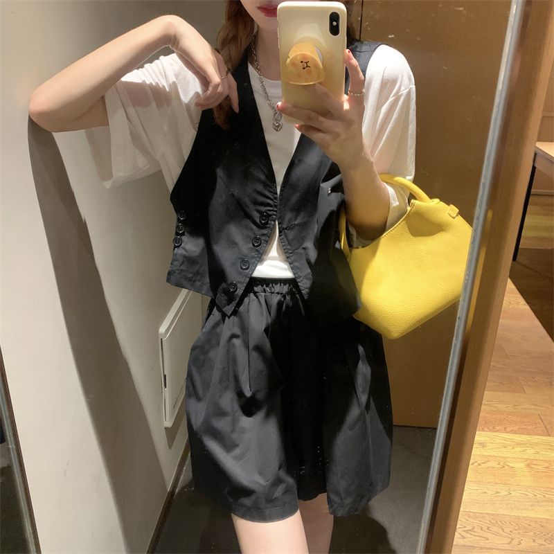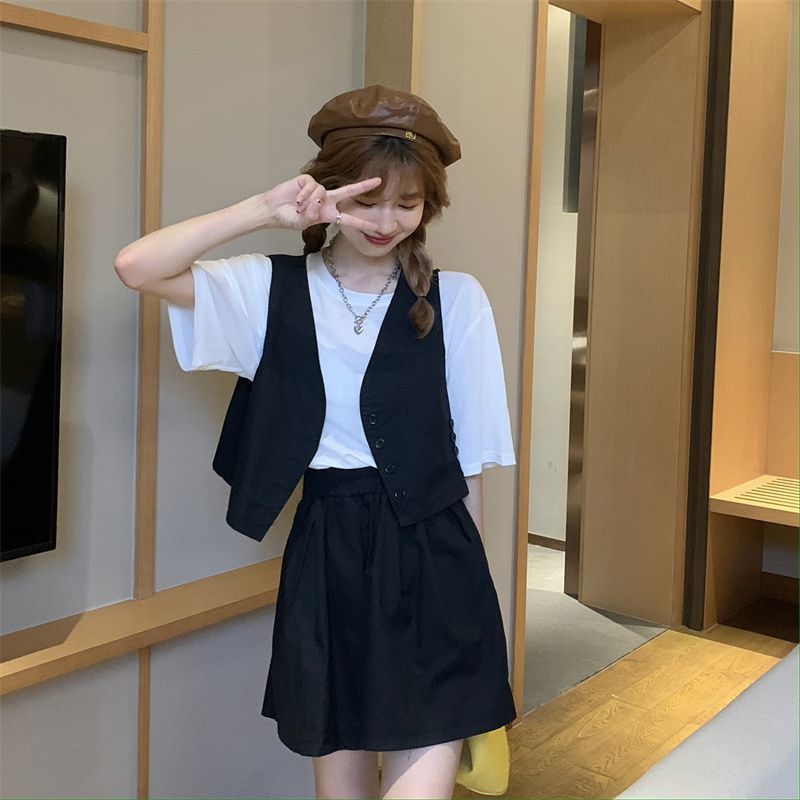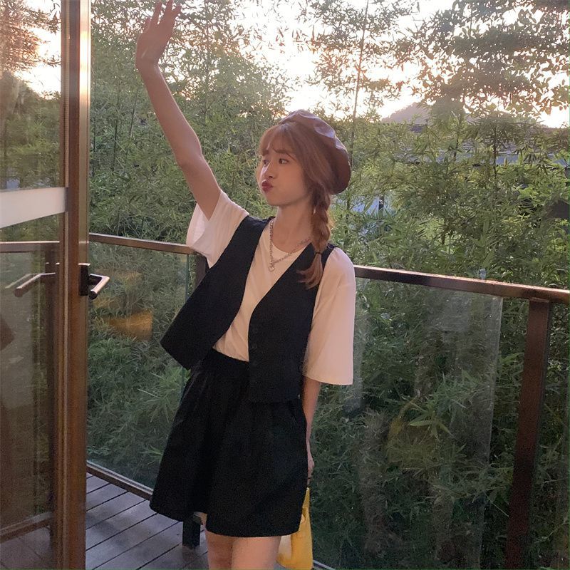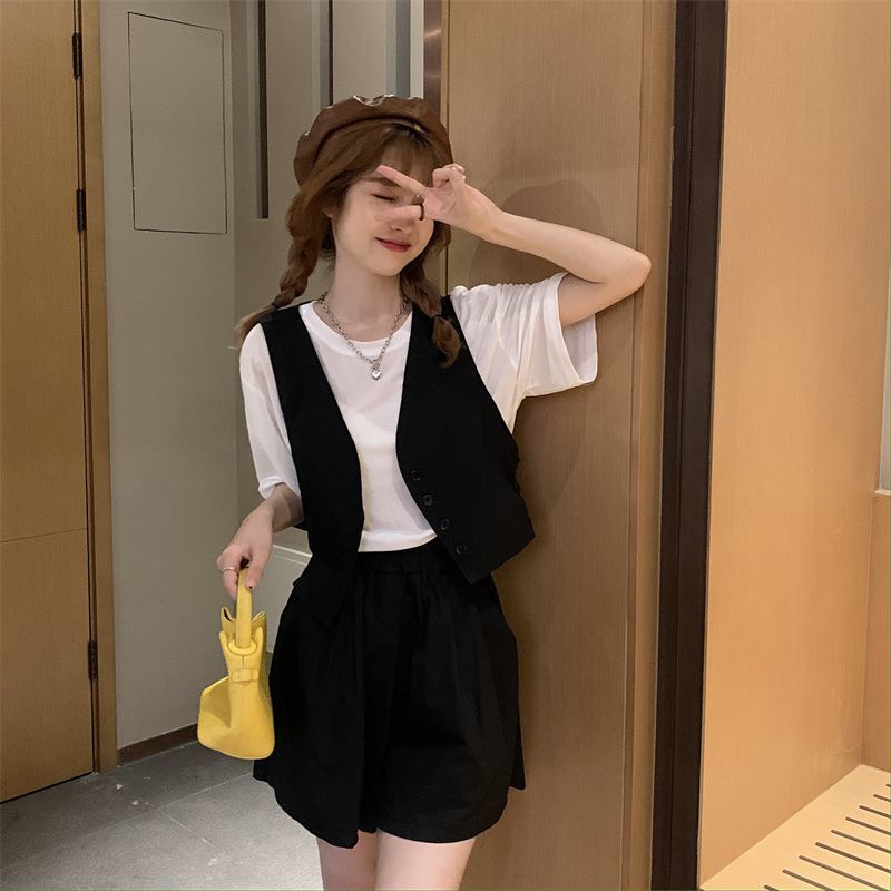 小马甲/短裤套装新款复古小众西装马甲外套短裤T恤时尚薄款两件套