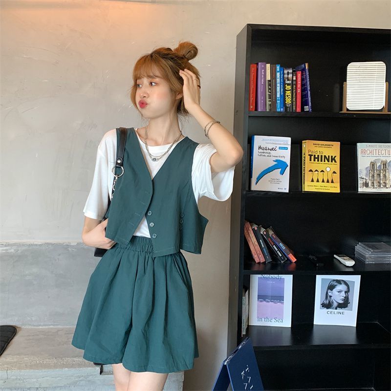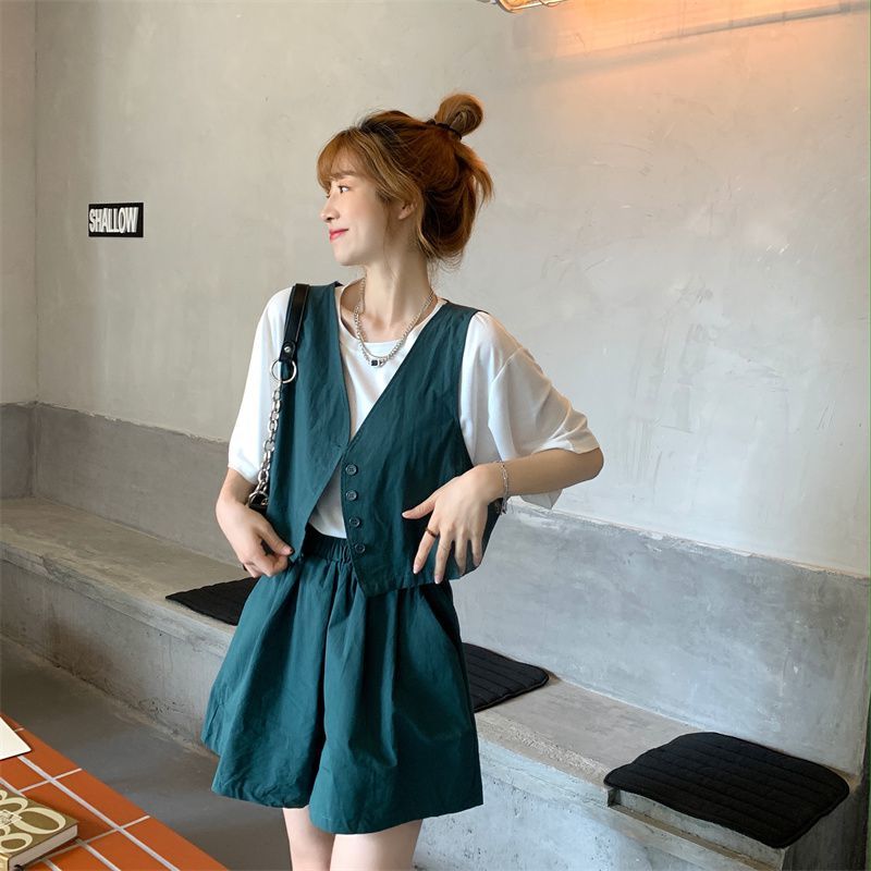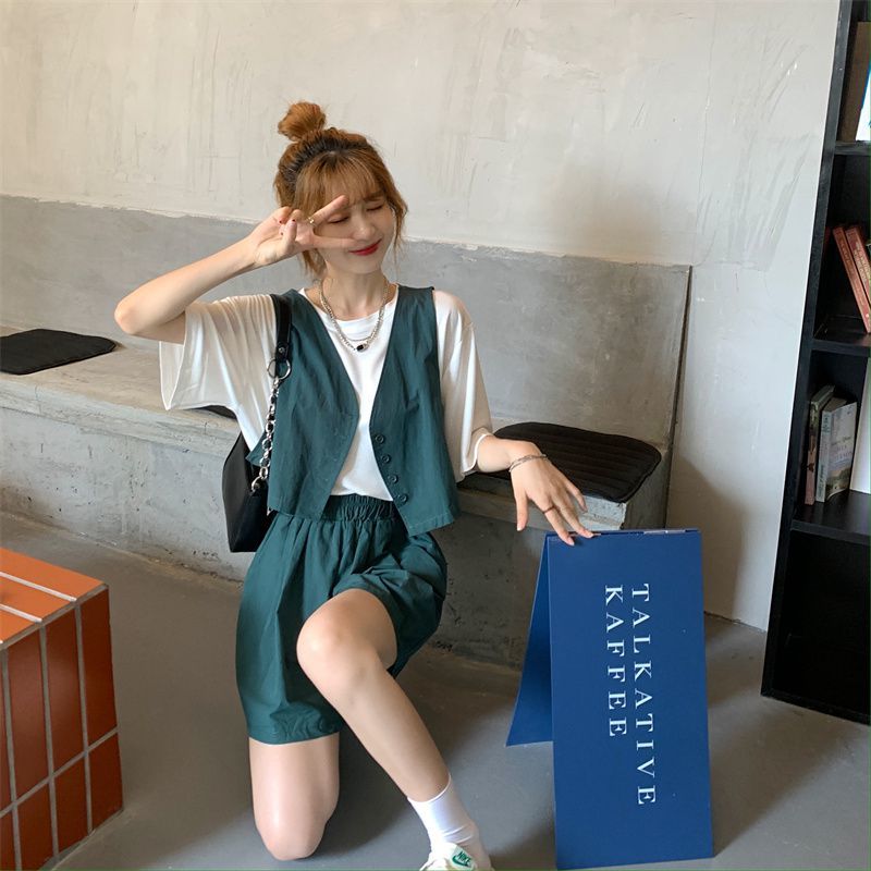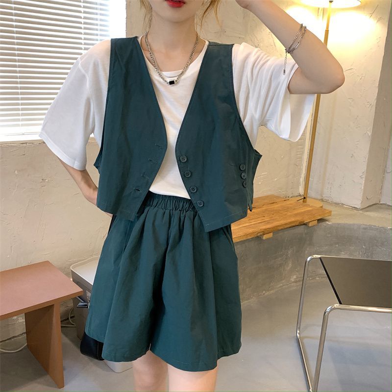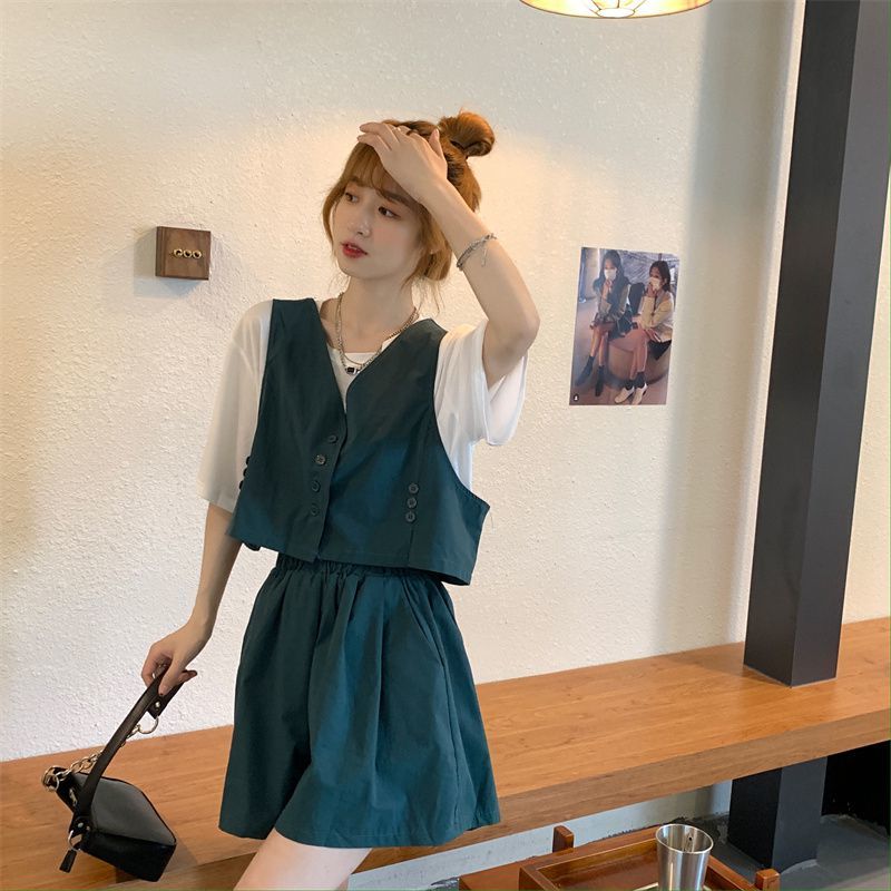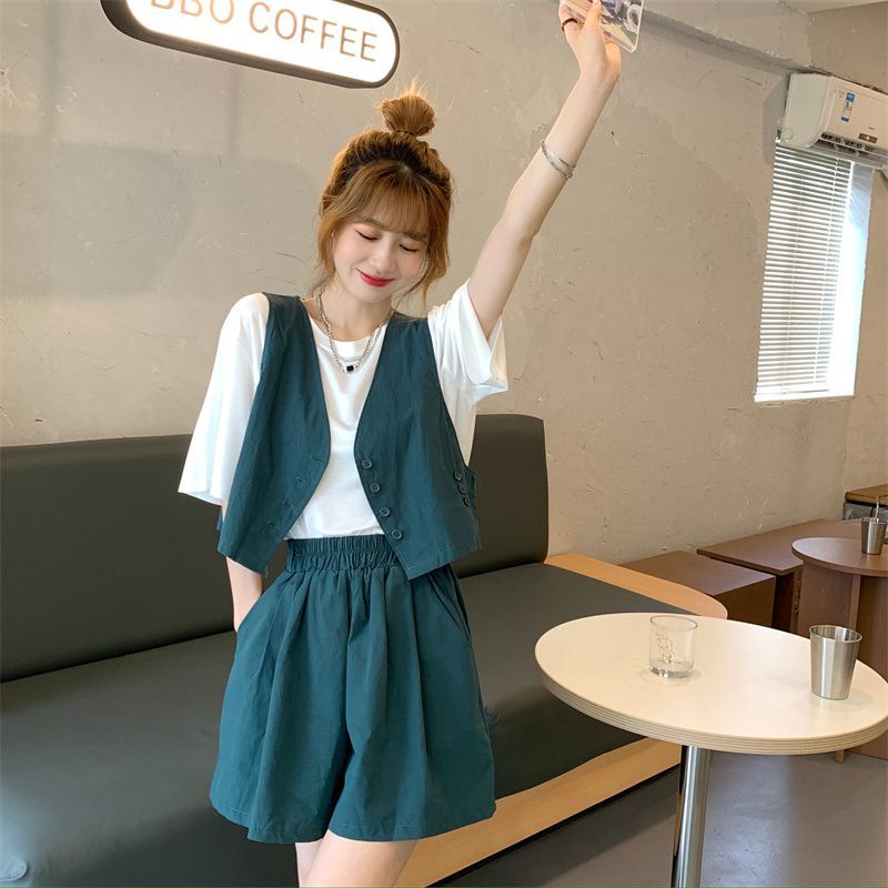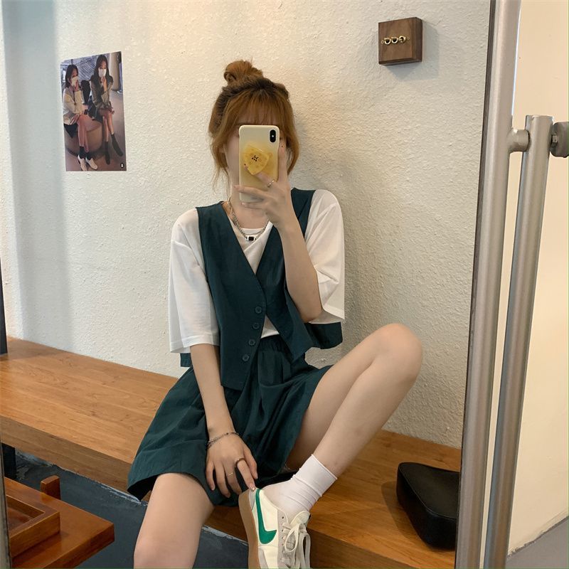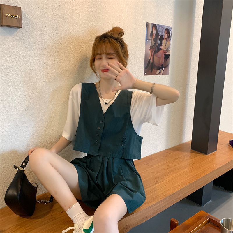 小马甲/短裤套装新款复古小众西装马甲外套短裤T恤时尚薄款两件套