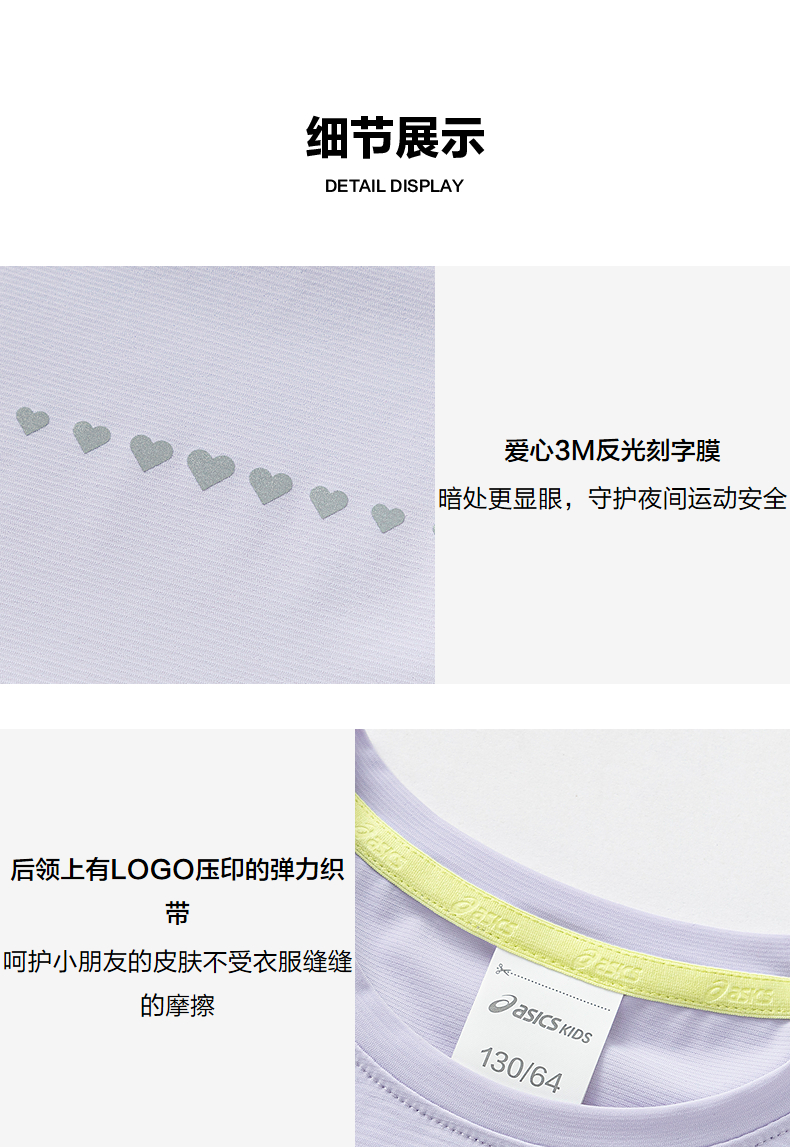 ASICS/亚瑟士儿童25年夏季新款女童收腰弹力舒适凉感短袖针织T恤