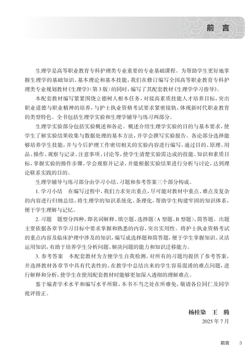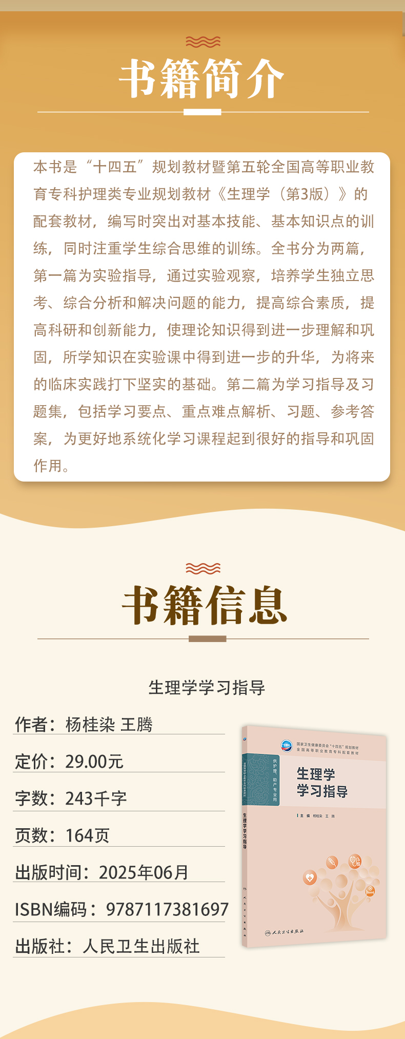 生理学学习指导 十四五规划教材 全国高等职业教育专科配套教材 杨桂染 王腾 主编 供护理助产专业用 9787117381697人民卫生出版社