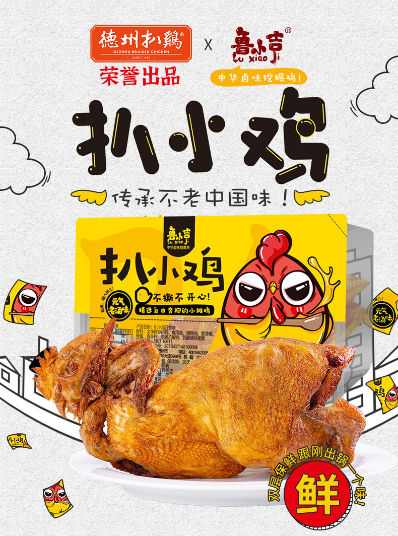 【休闲零食】德州扒鸡鲁小吉五香/藤椒/甜辣味300g/只 开袋即食年货佳品