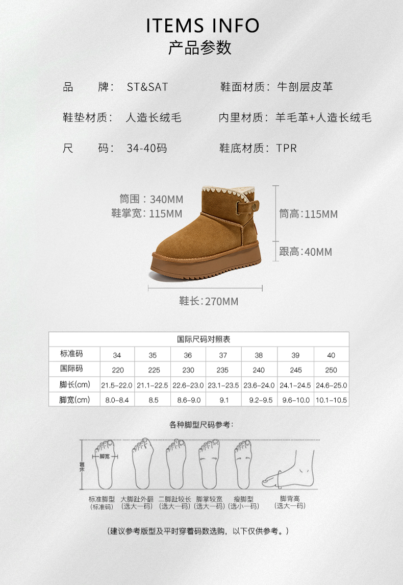 星期六时尚扣带百搭保暖雪地靴SSC4118E39