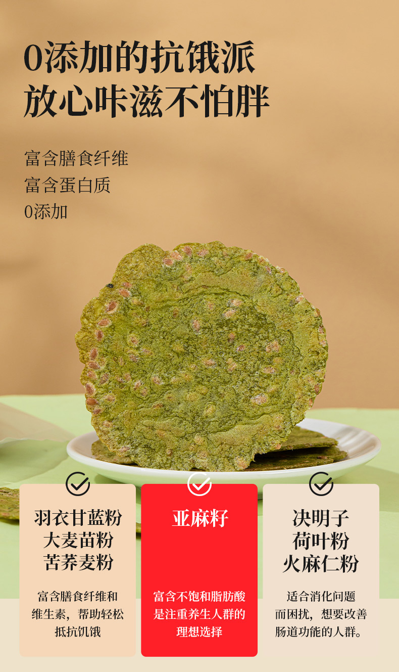 【买二送一❗️亚麻籽羽衣甘蓝焦饼】不单独添加的抗饿派,放心咔滋不怕,无油饼坯·低温烘烤,富含膳食让身体没负担,胖男女孕妇儿童香酥焦饼休闲食品QQ