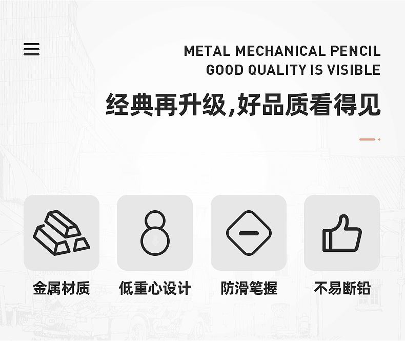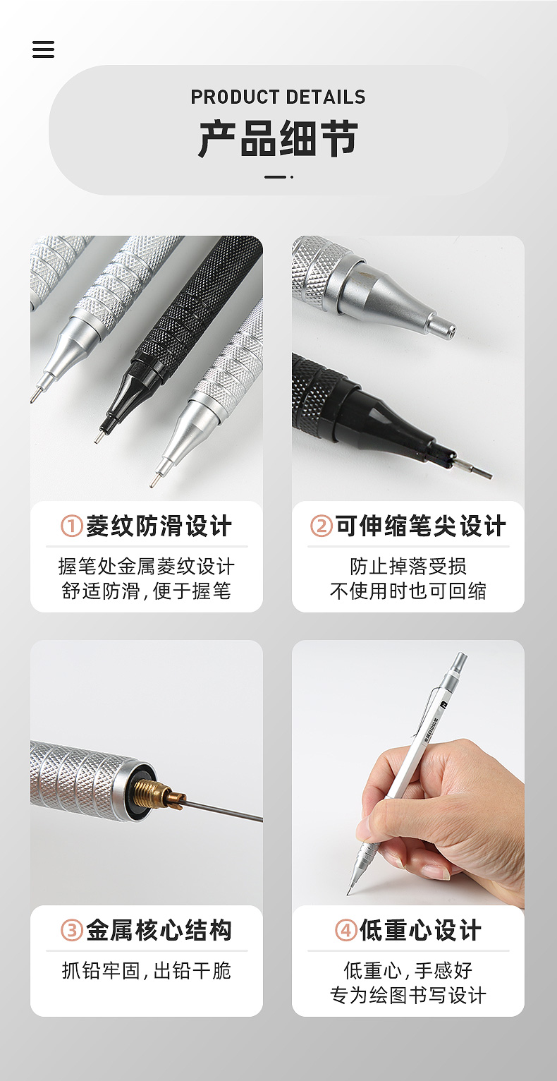 touchmark简约款金属自动铅笔写字/绘图/绘画