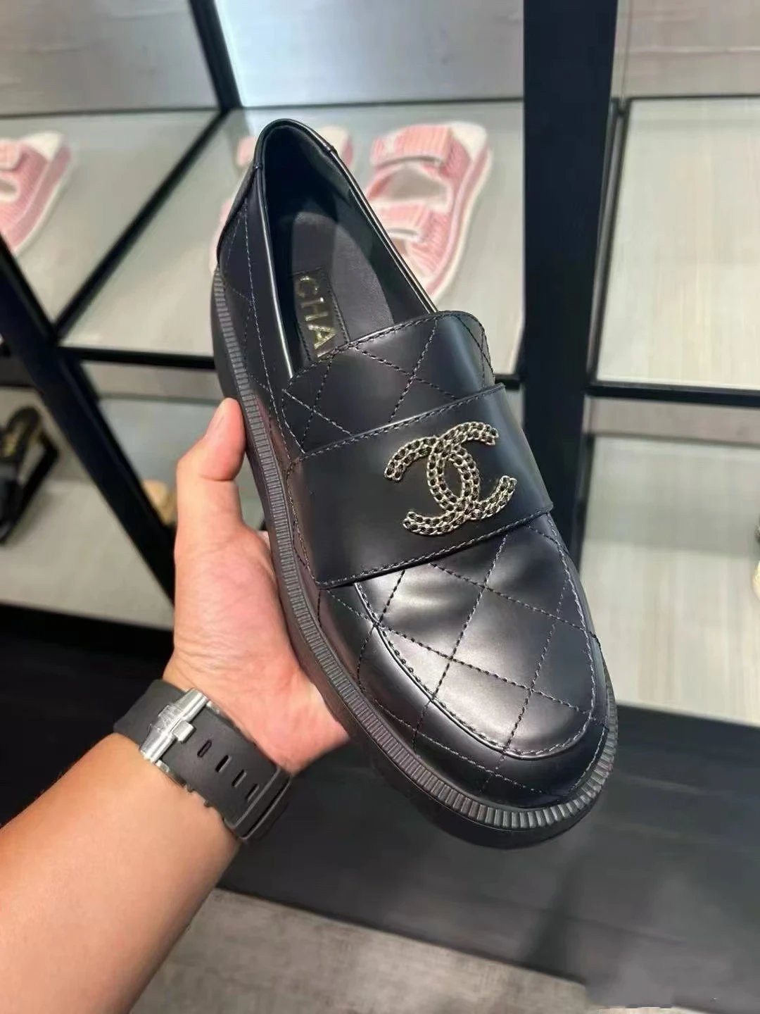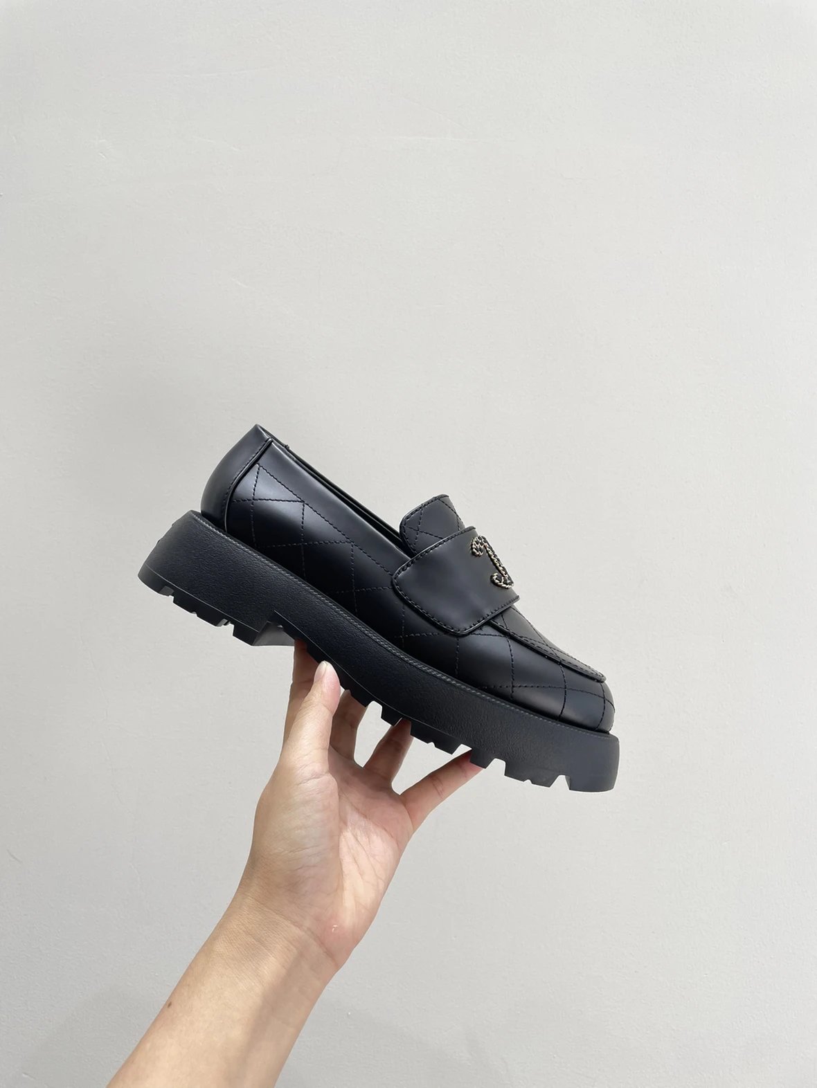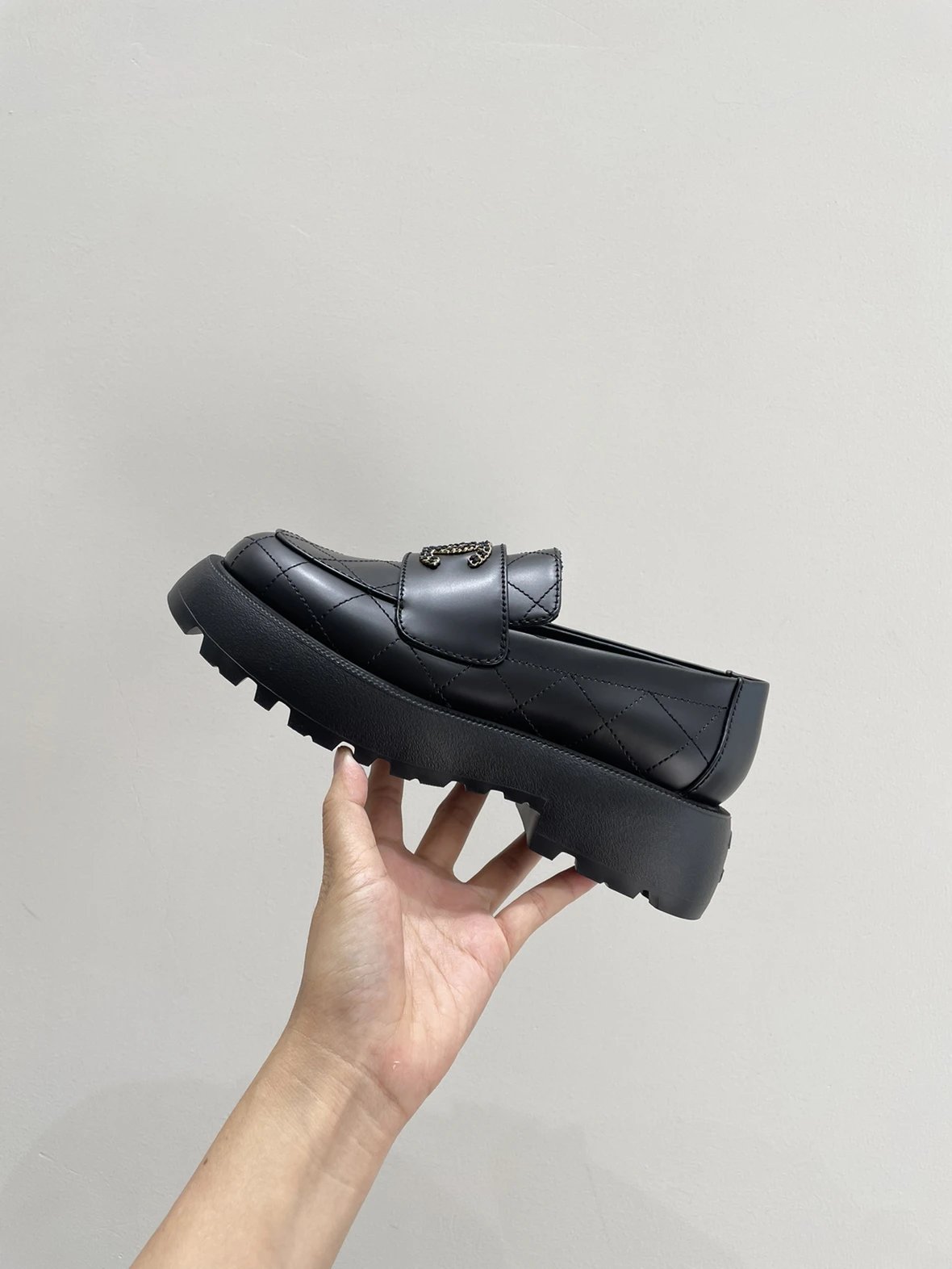 买手渠道 菱格皮穿链厚底乐福鞋 超轻发泡大底