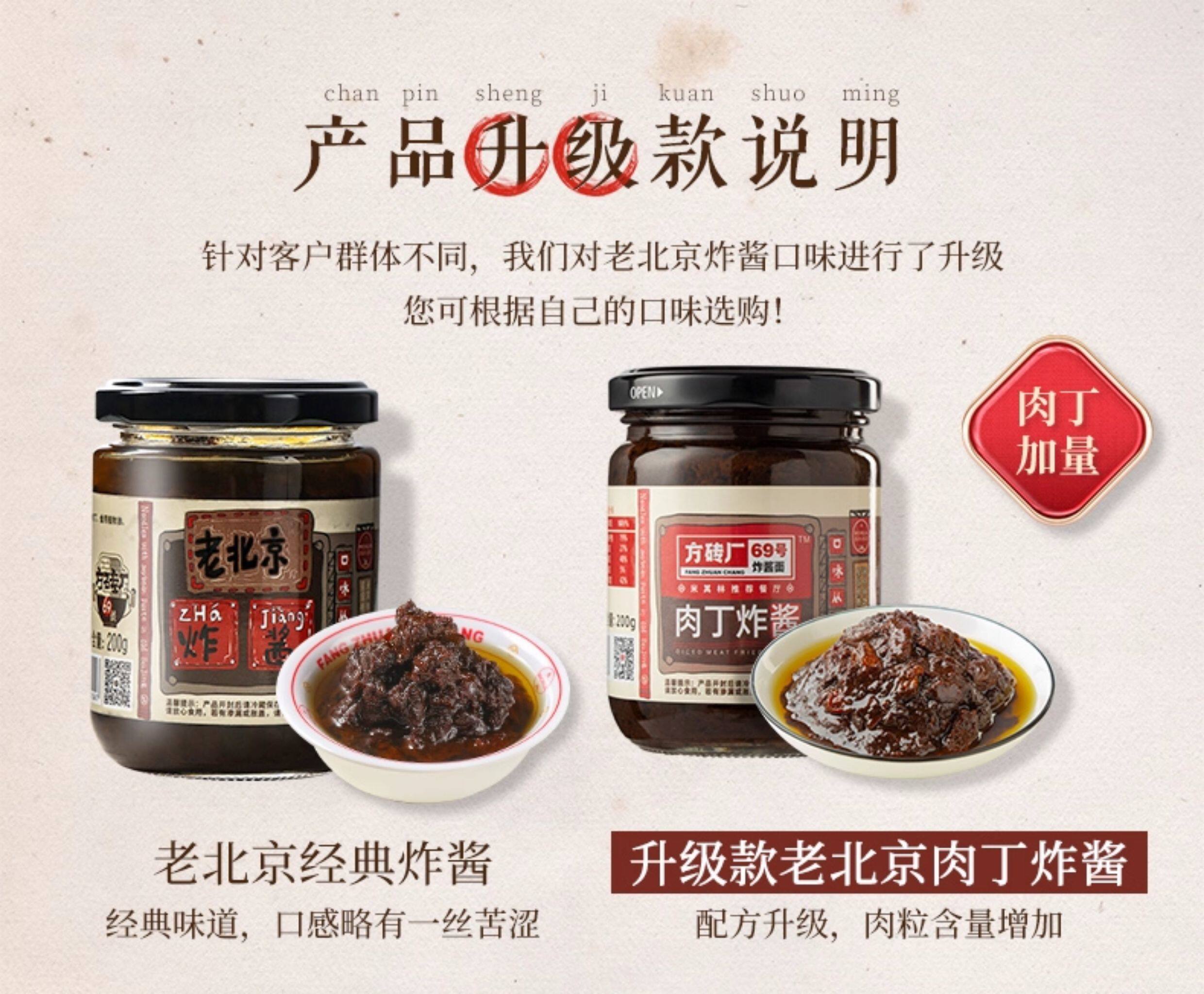 【还原胡同里的老味道】方砖厂69号肉丁炸酱200g*3瓶
