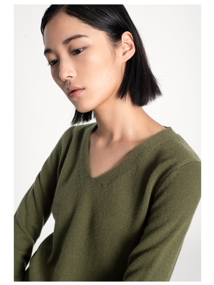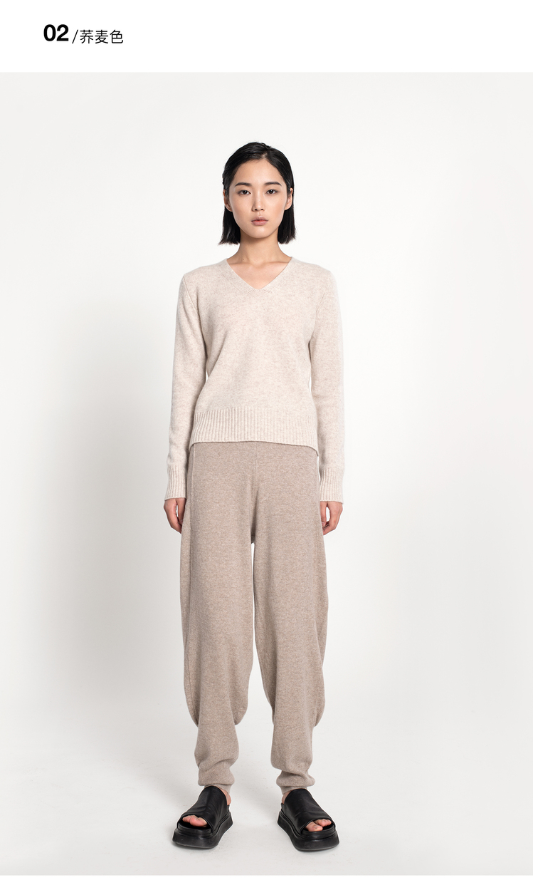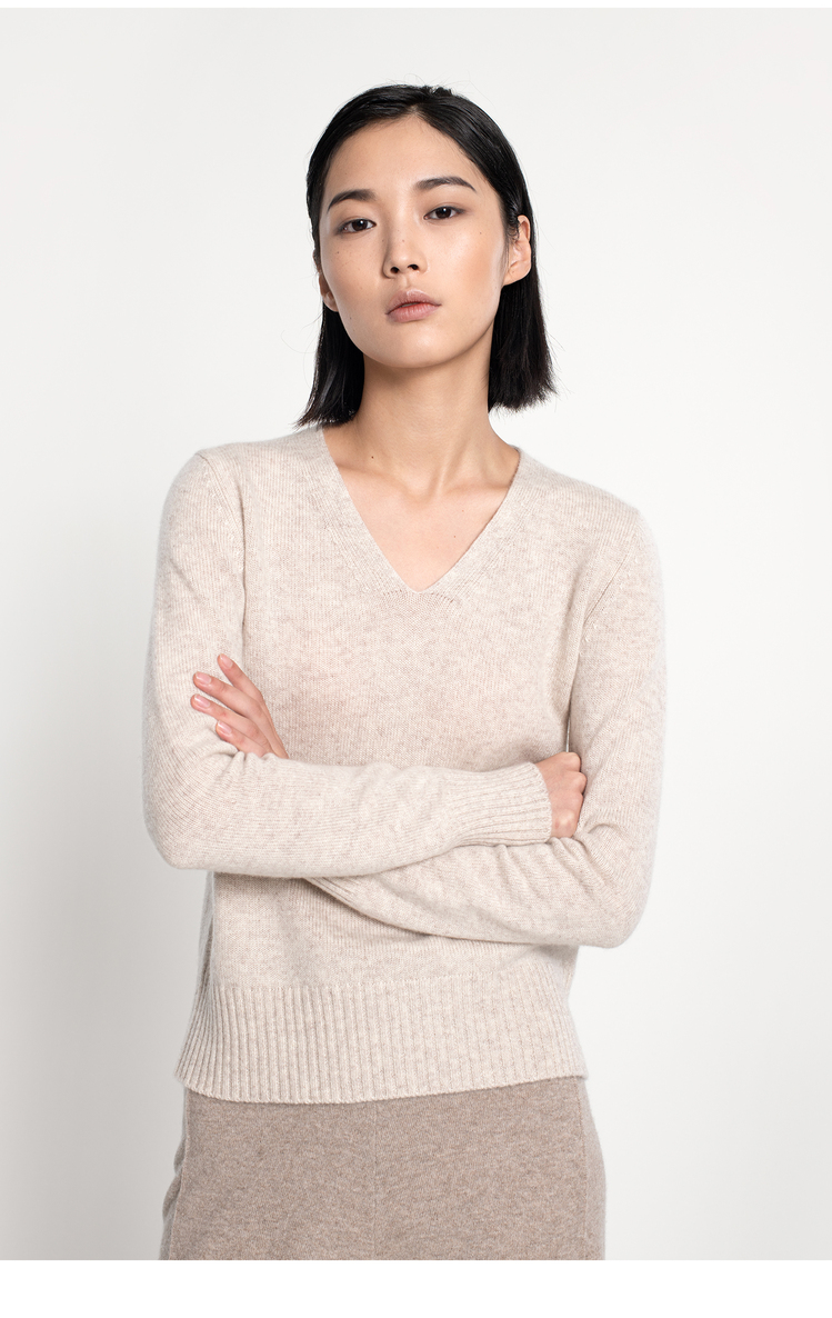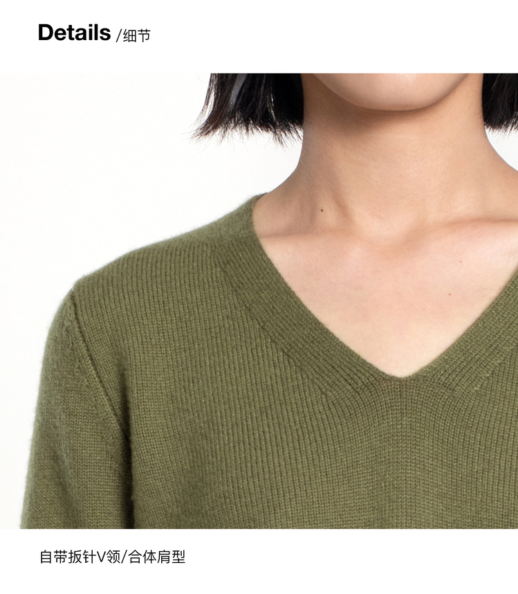 女士2021新款纯山羊绒双股加厚V领套头衫