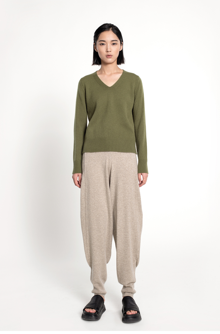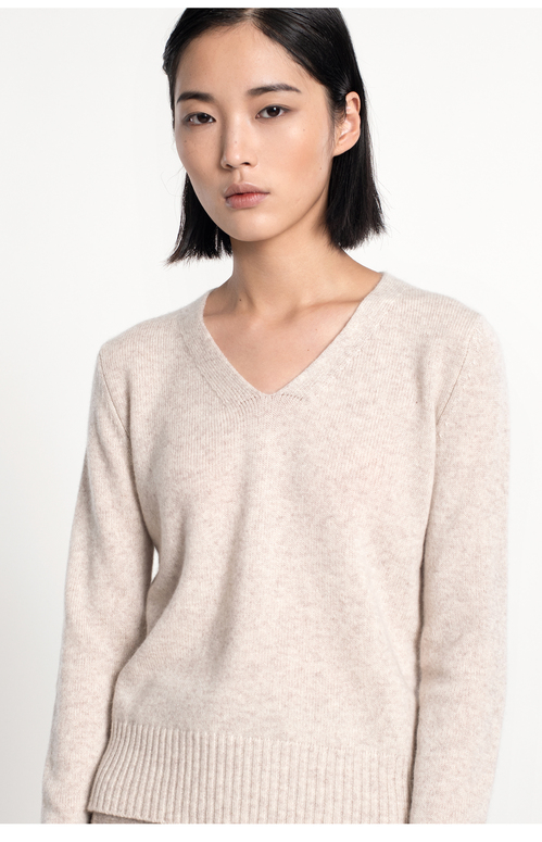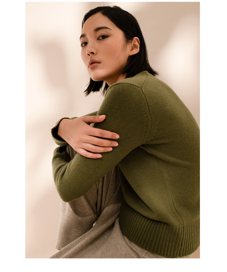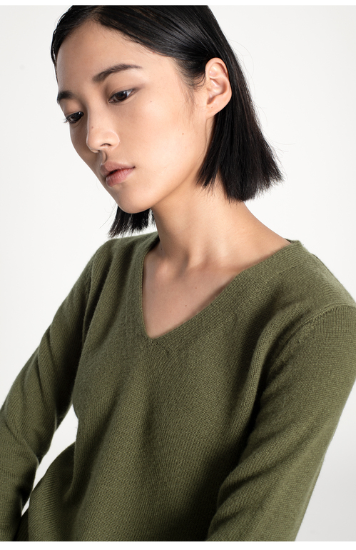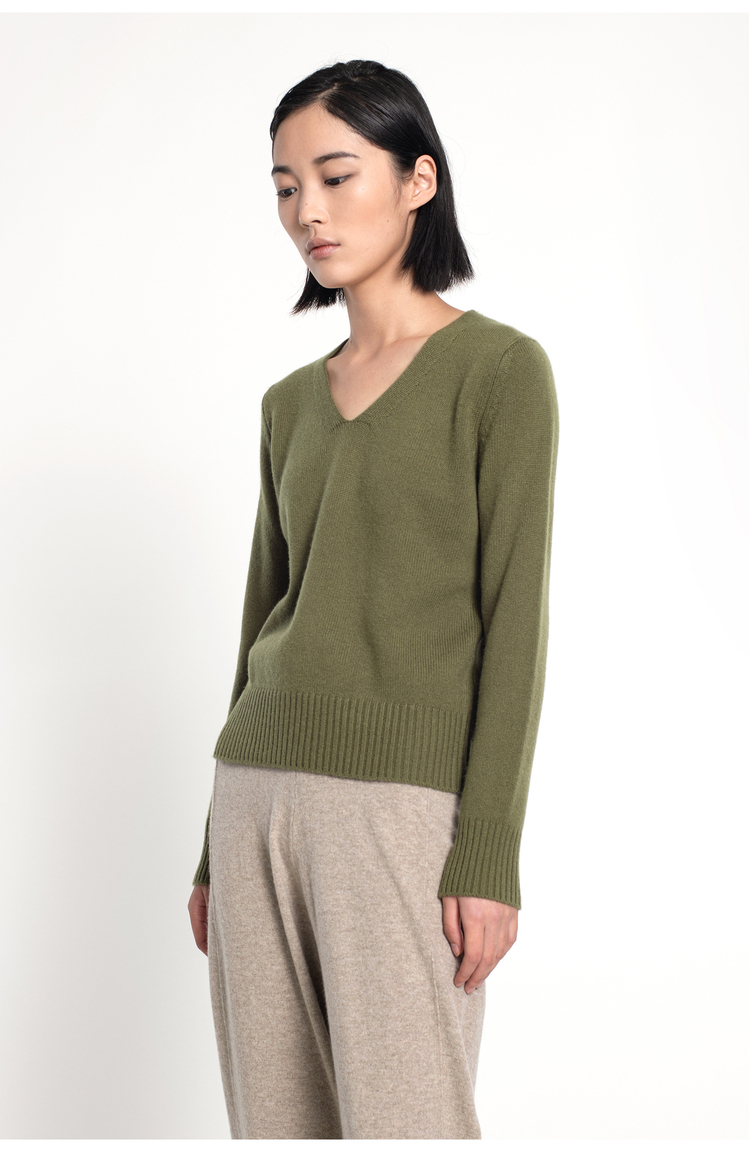 女士2021新款纯山羊绒双股加厚V领套头衫