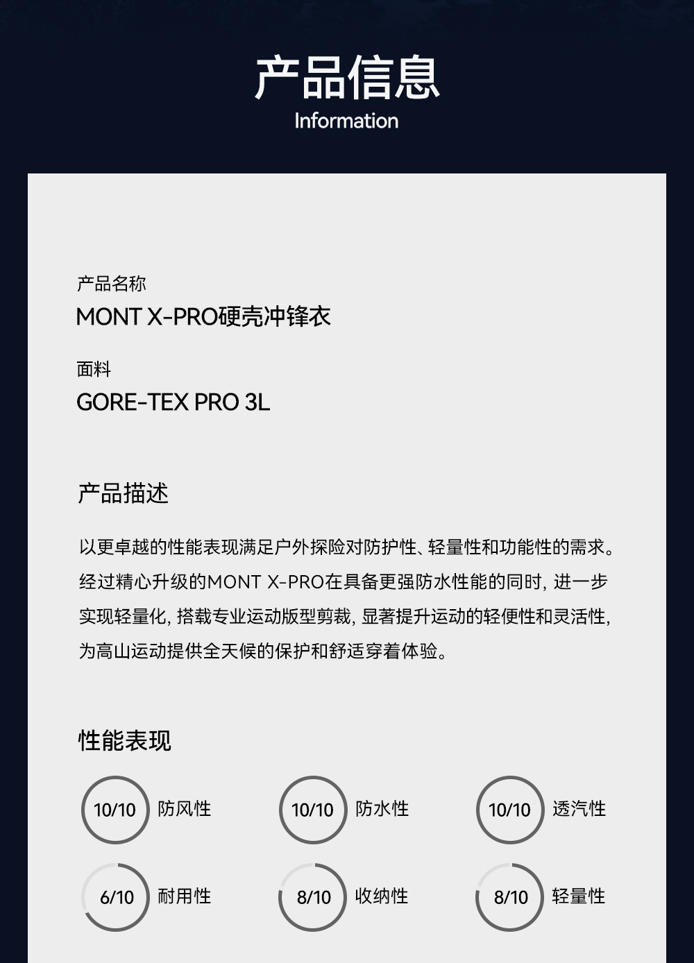 【MONT】KAILAS凯乐石 MONT X-PRO 冲锋衣 KG2511111/KG2531106