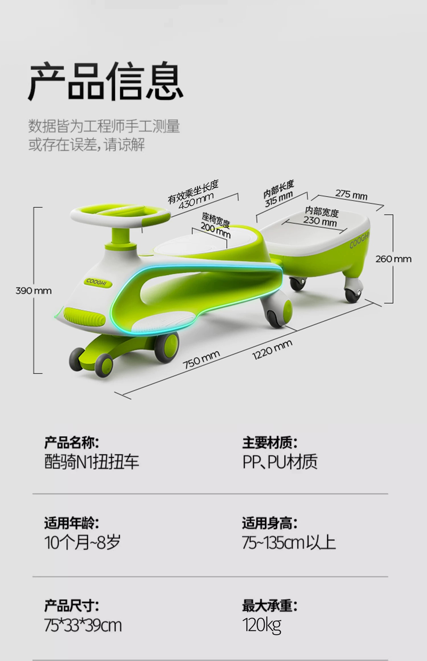 酷骑扭扭车儿童1岁到3岁宝宝大人可坐双人防侧翻婴儿溜溜车摇摇车