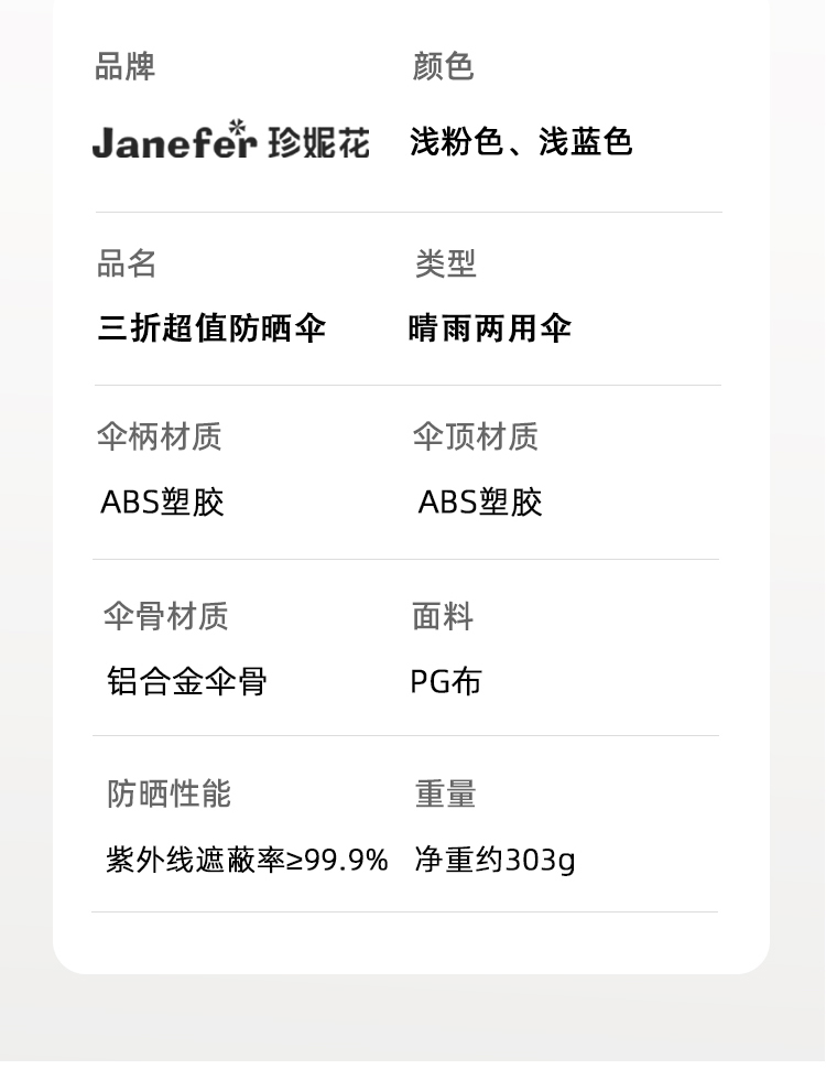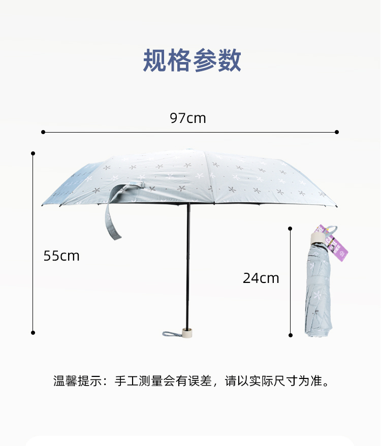 珍妮花超值防晒三折伞55cmx8k