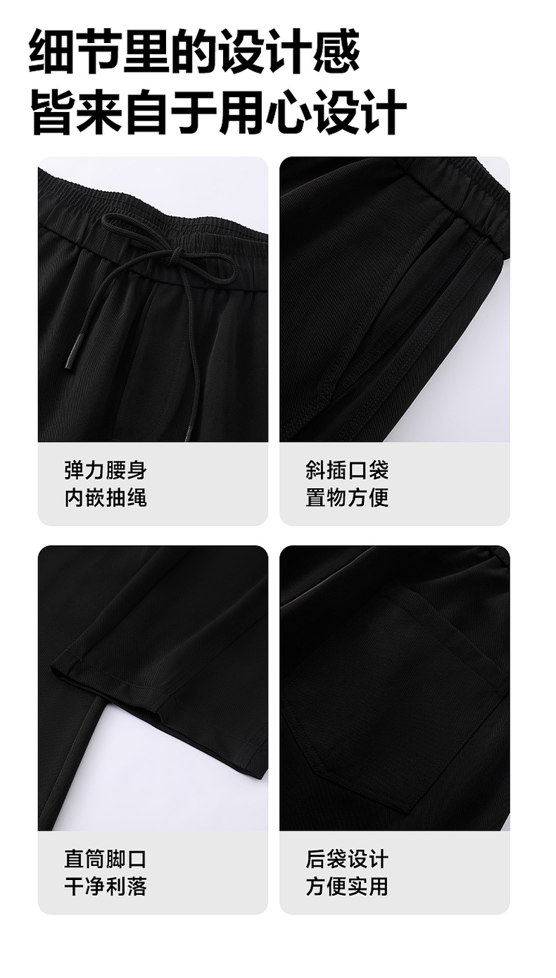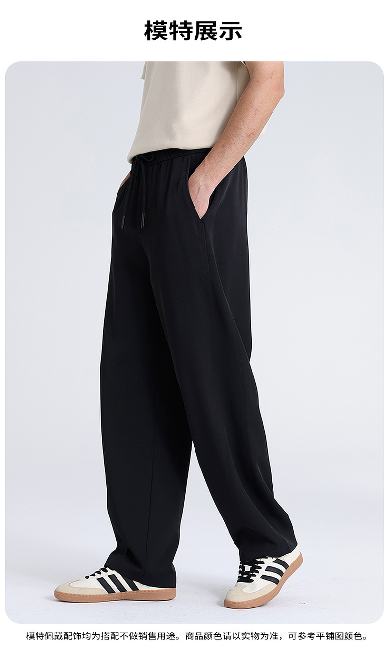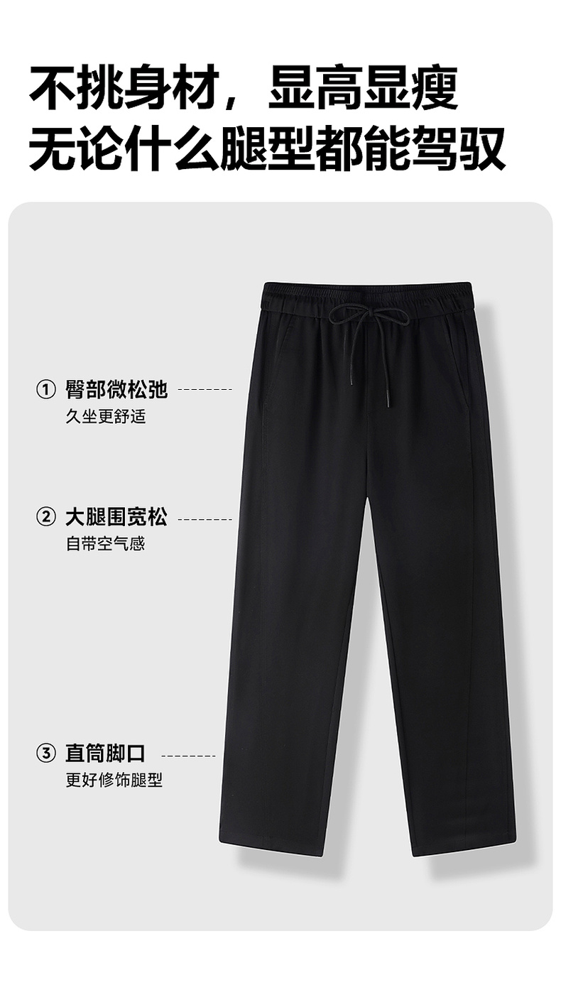 GXG男装26夏季时尚弹力松紧腰系绳亲肤透气直筒裤男式休闲长裤K&C