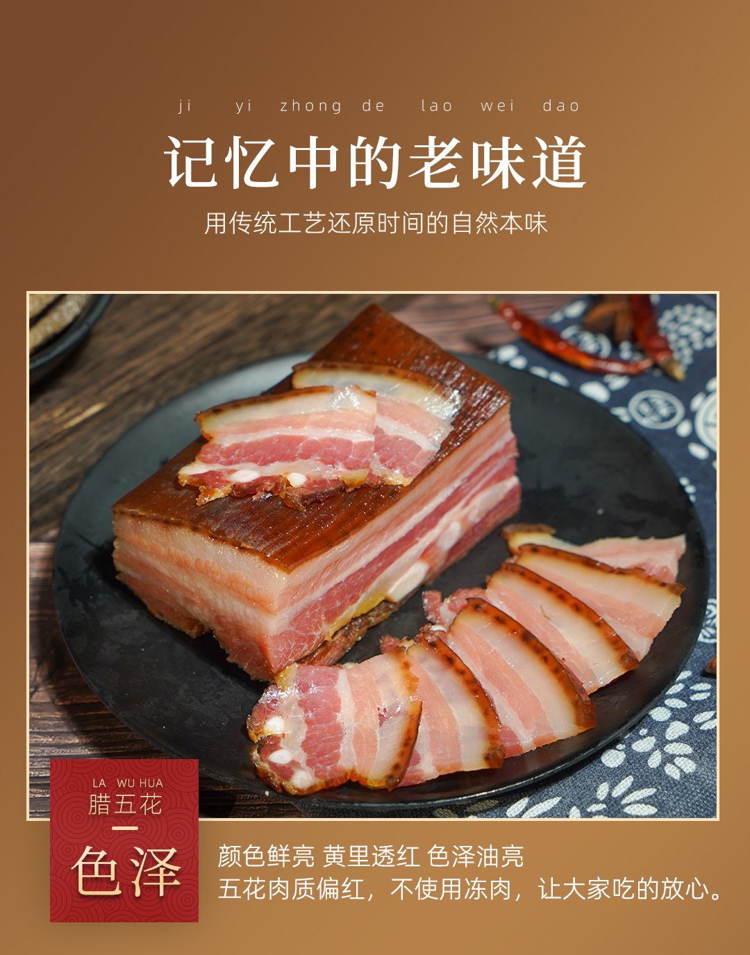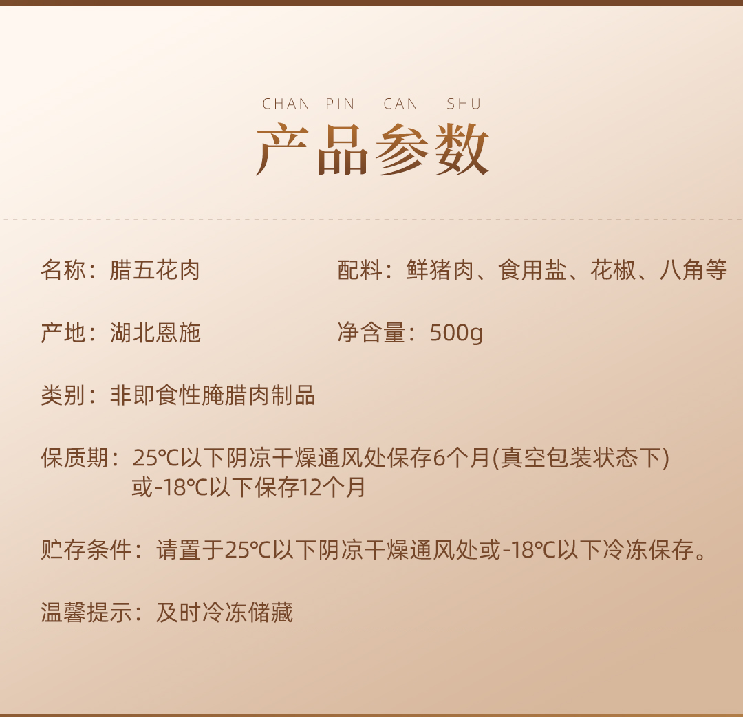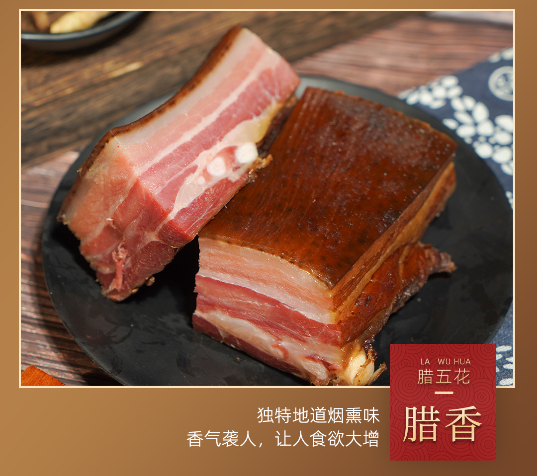 巴东县巴腊香烟熏风味土家腊五花肉500g/袋