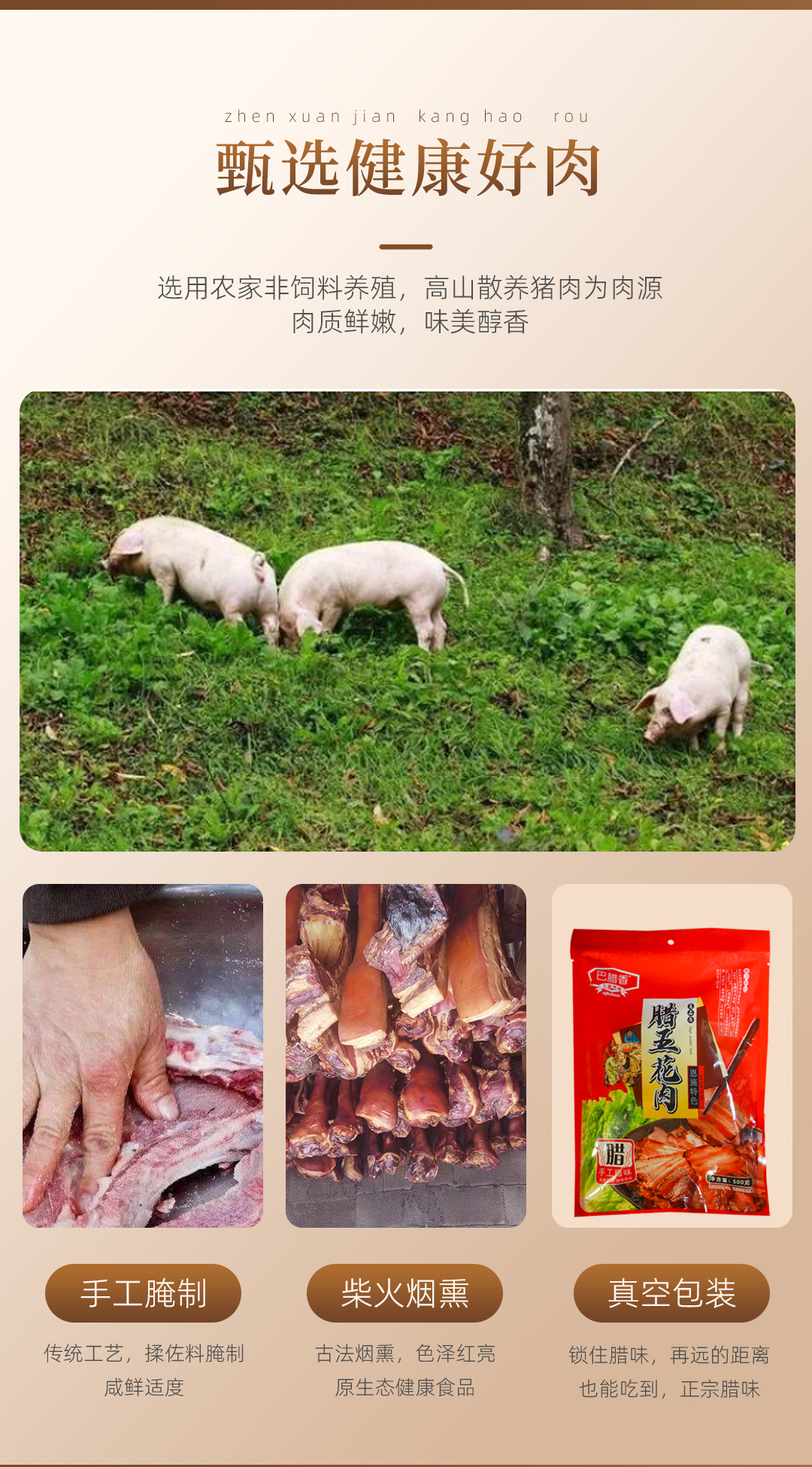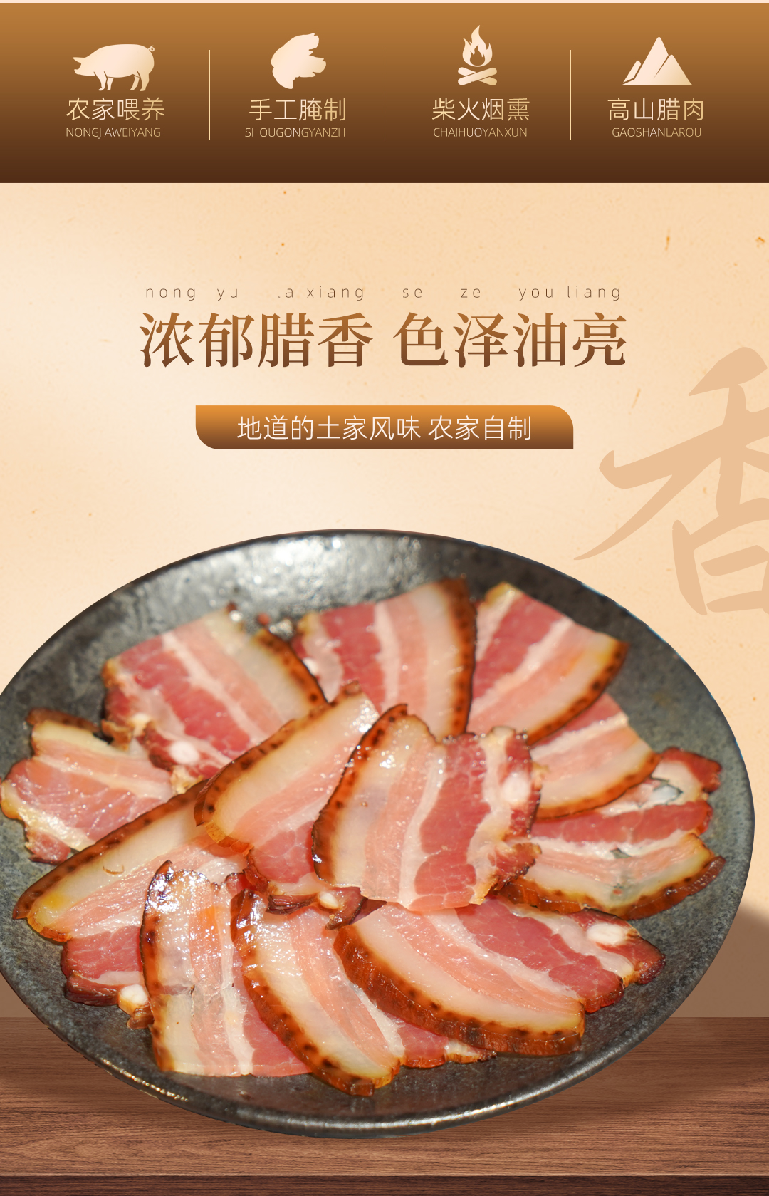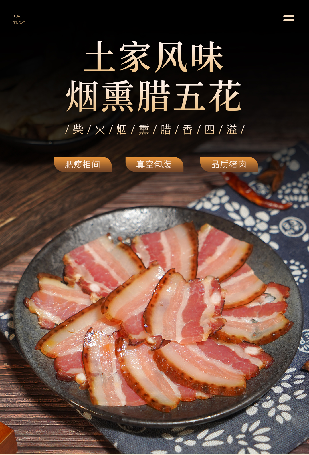 巴东县巴腊香烟熏风味土家腊五花肉500g/袋