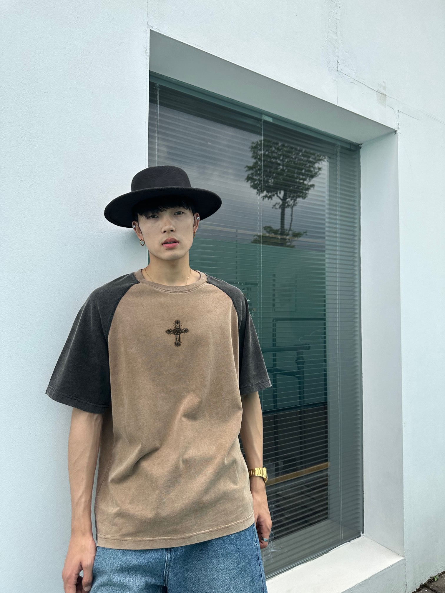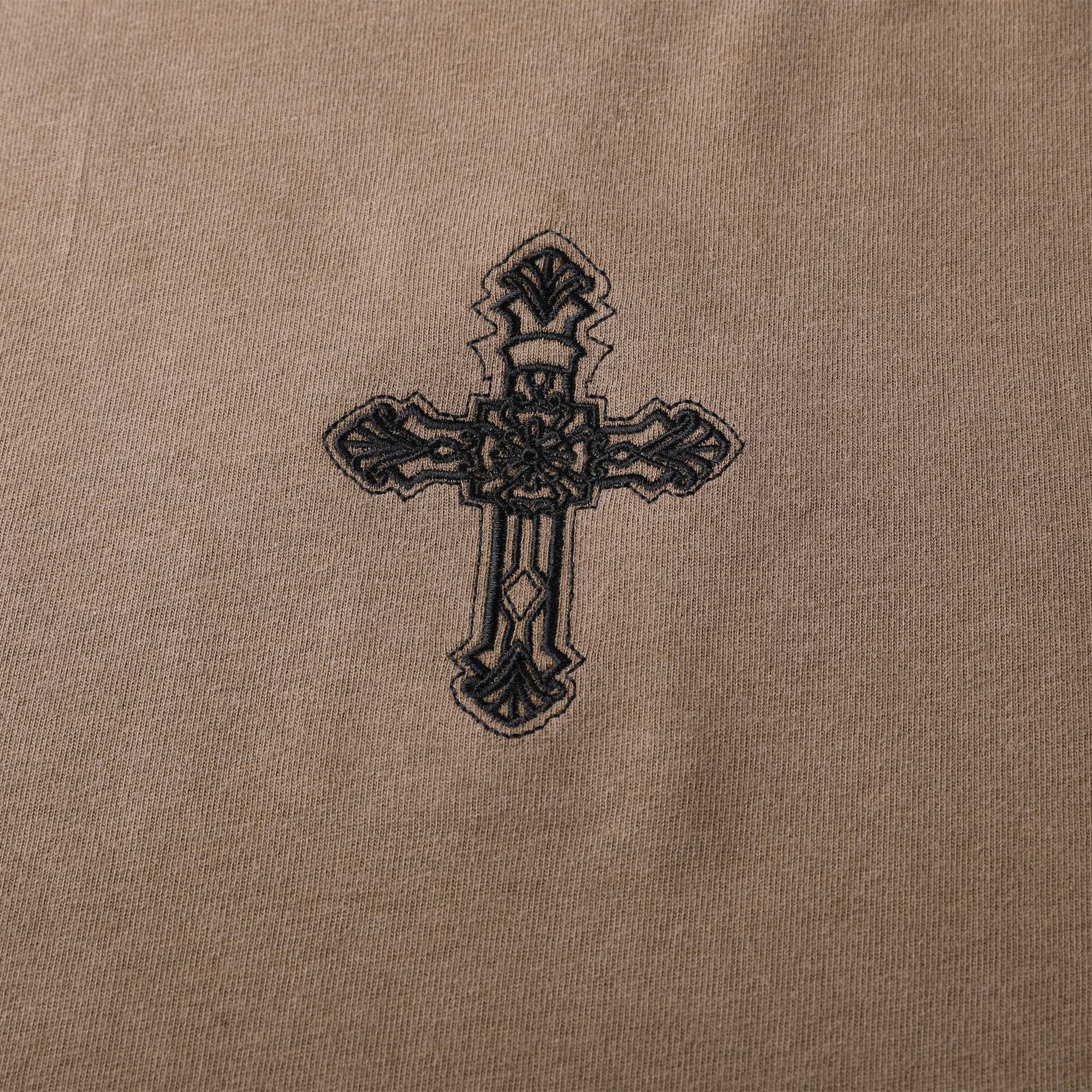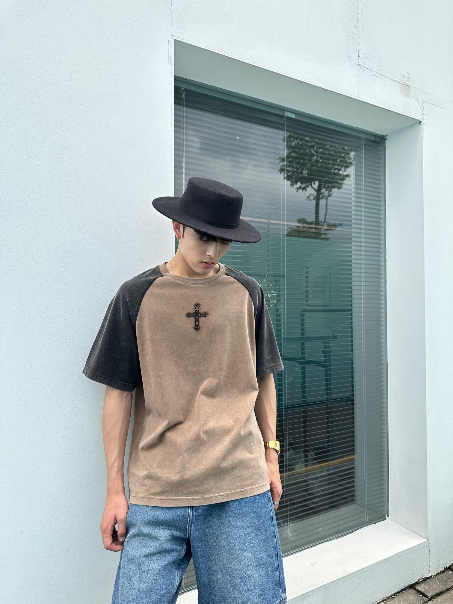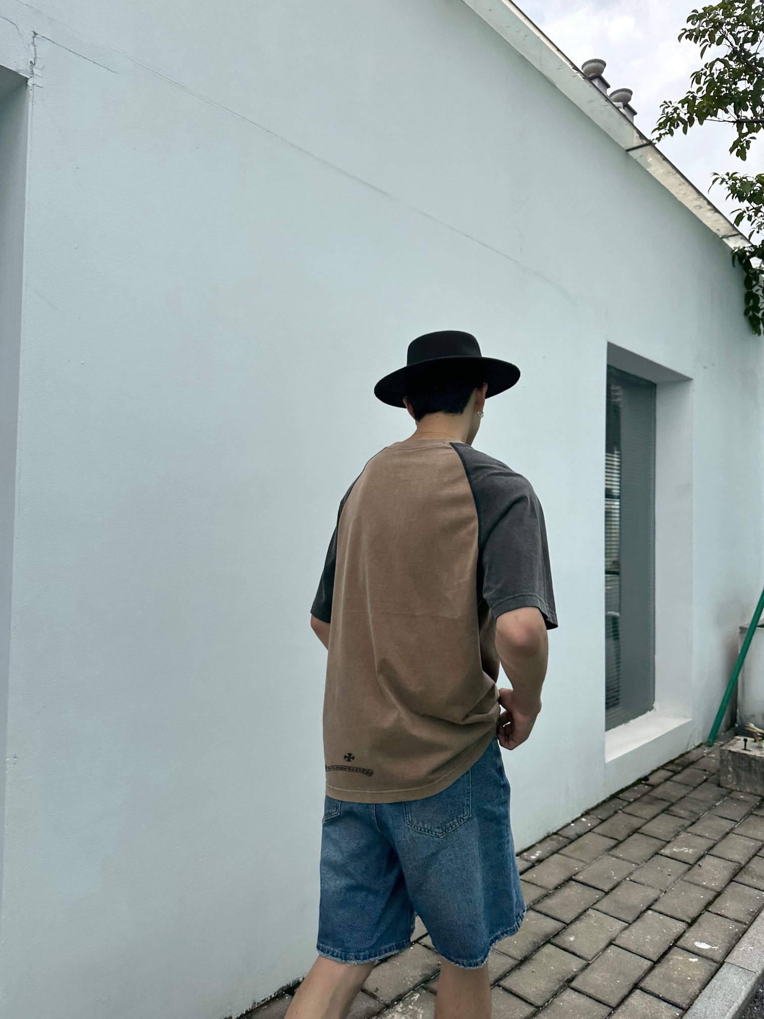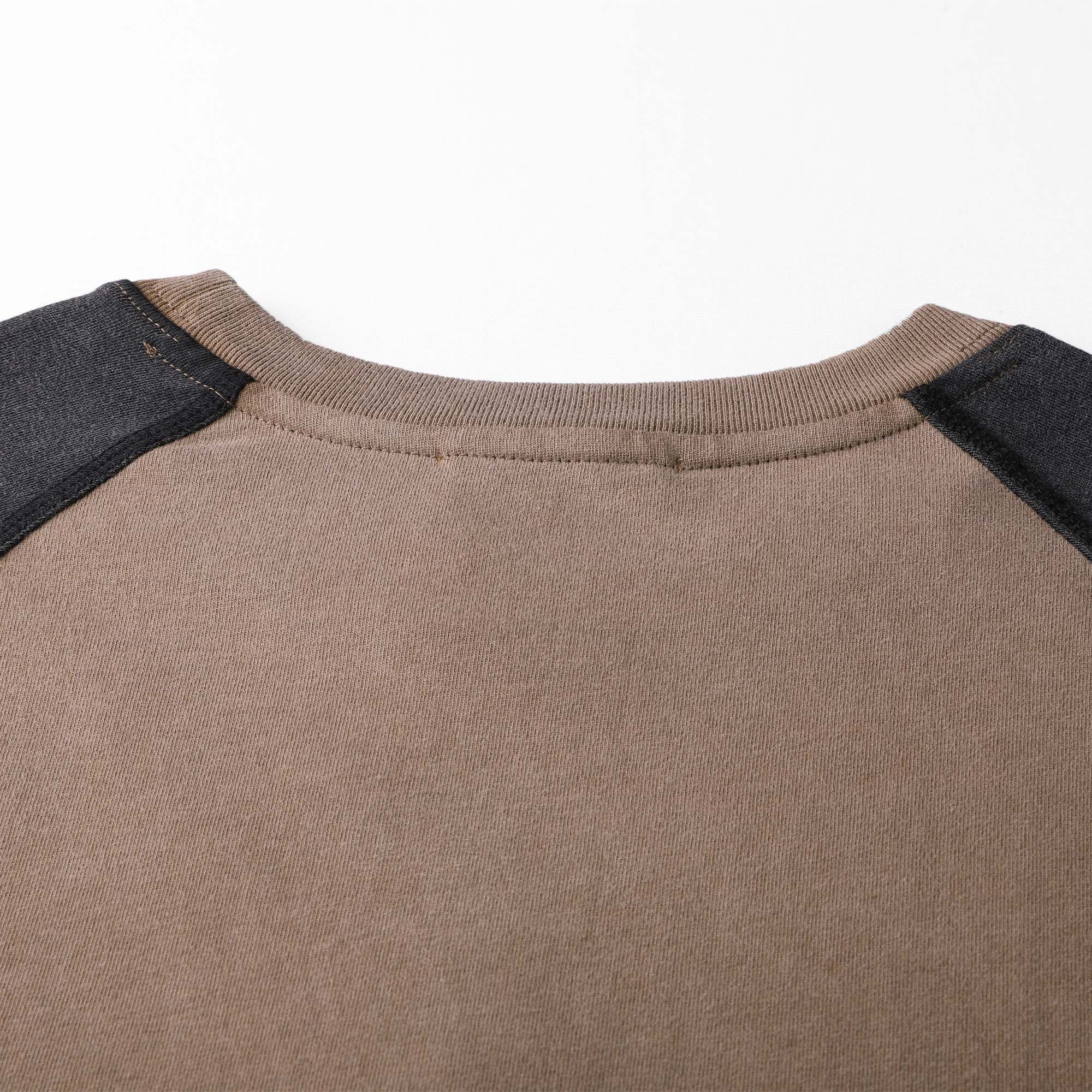 高克重面料舒适有型。拼色插肩袖设计。正面胸前和背面下摆精致刺绣。