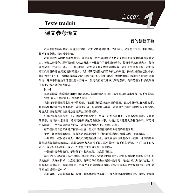 学生用书中课文的参考译文;