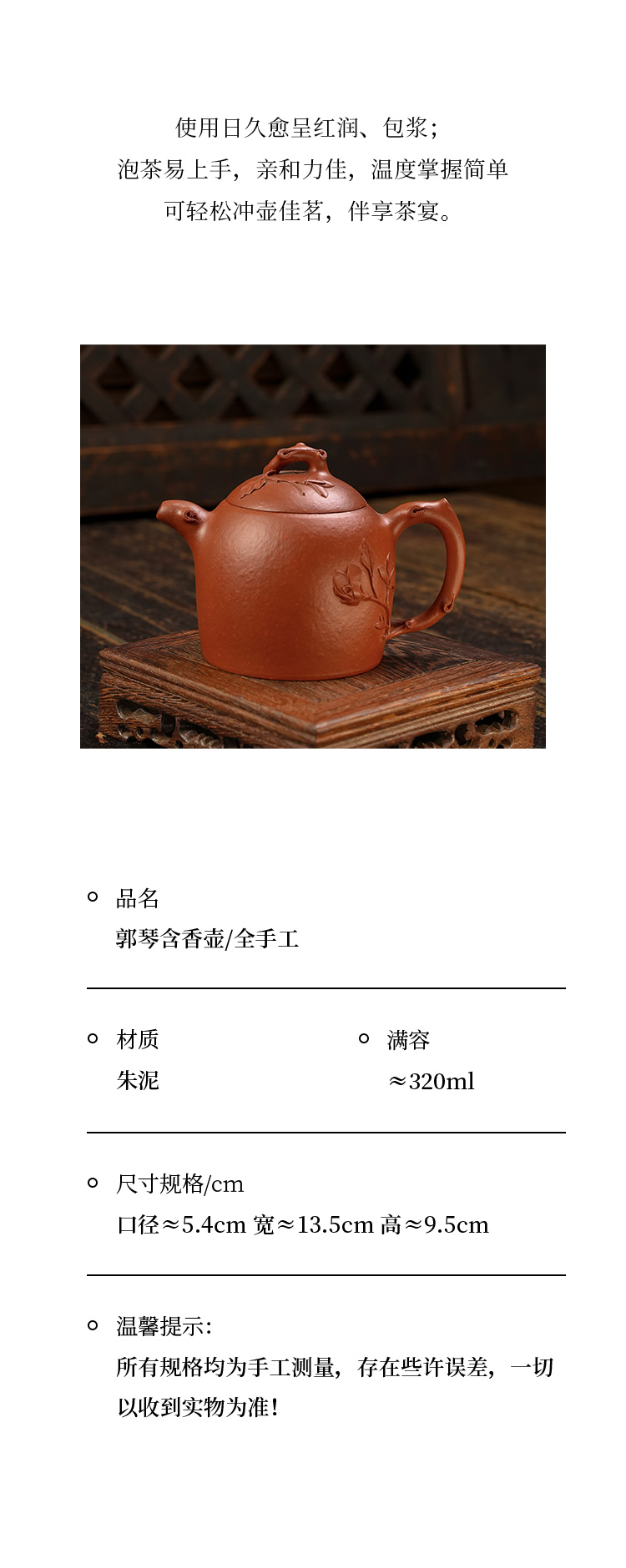 郭琴获奖作品 全手工含香壶 宜兴原矿茶壶紫砂壶功夫茶泡茶壶紫砂茶具仿古