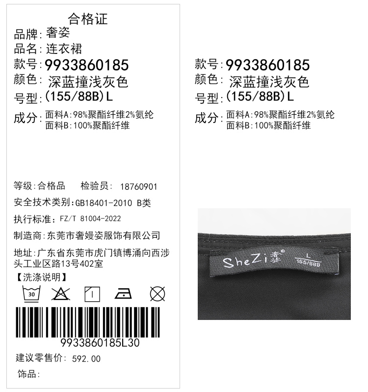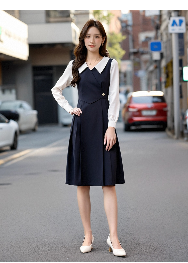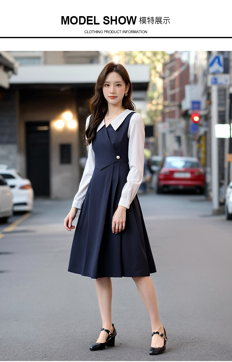 奢姿2025年春季新款大码女装翻领减龄裙子胖mm撞色简约时尚连衣裙9933860185