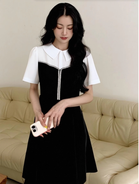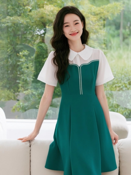 奢姿2025年夏装新款大码女装气质翻领拼接连衣裙胖妹妹时尚裙子9932825562