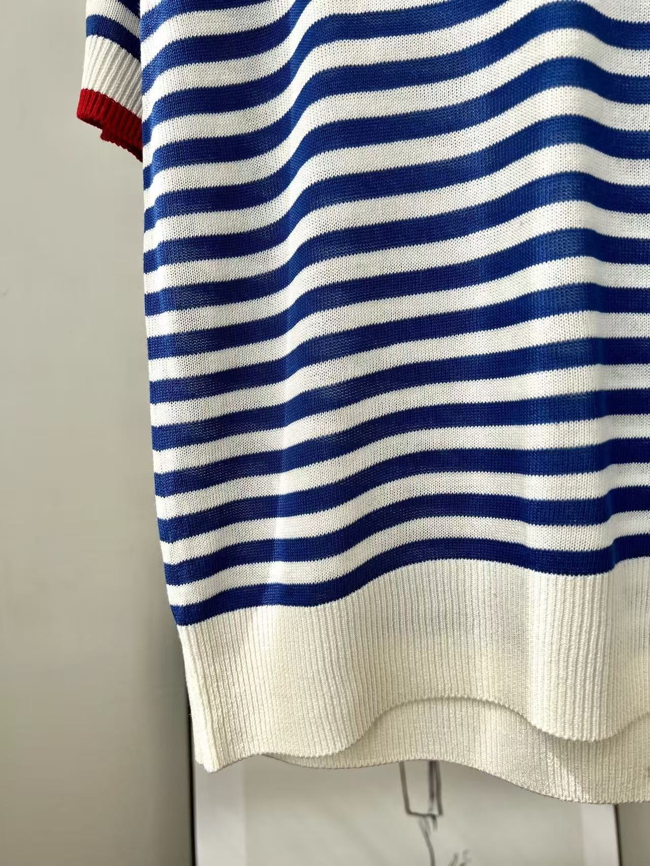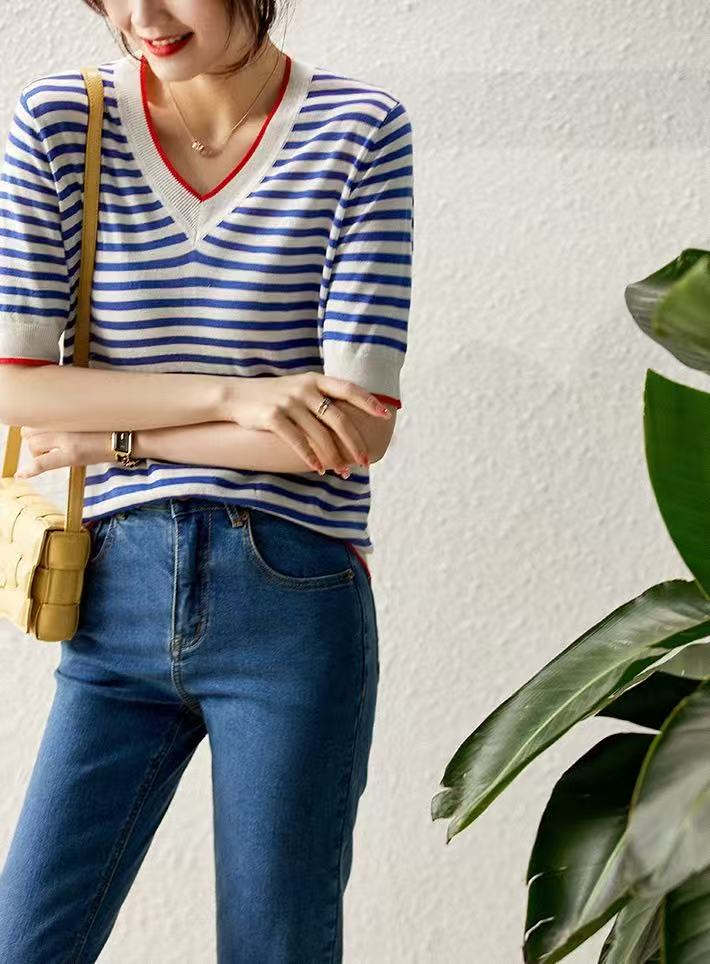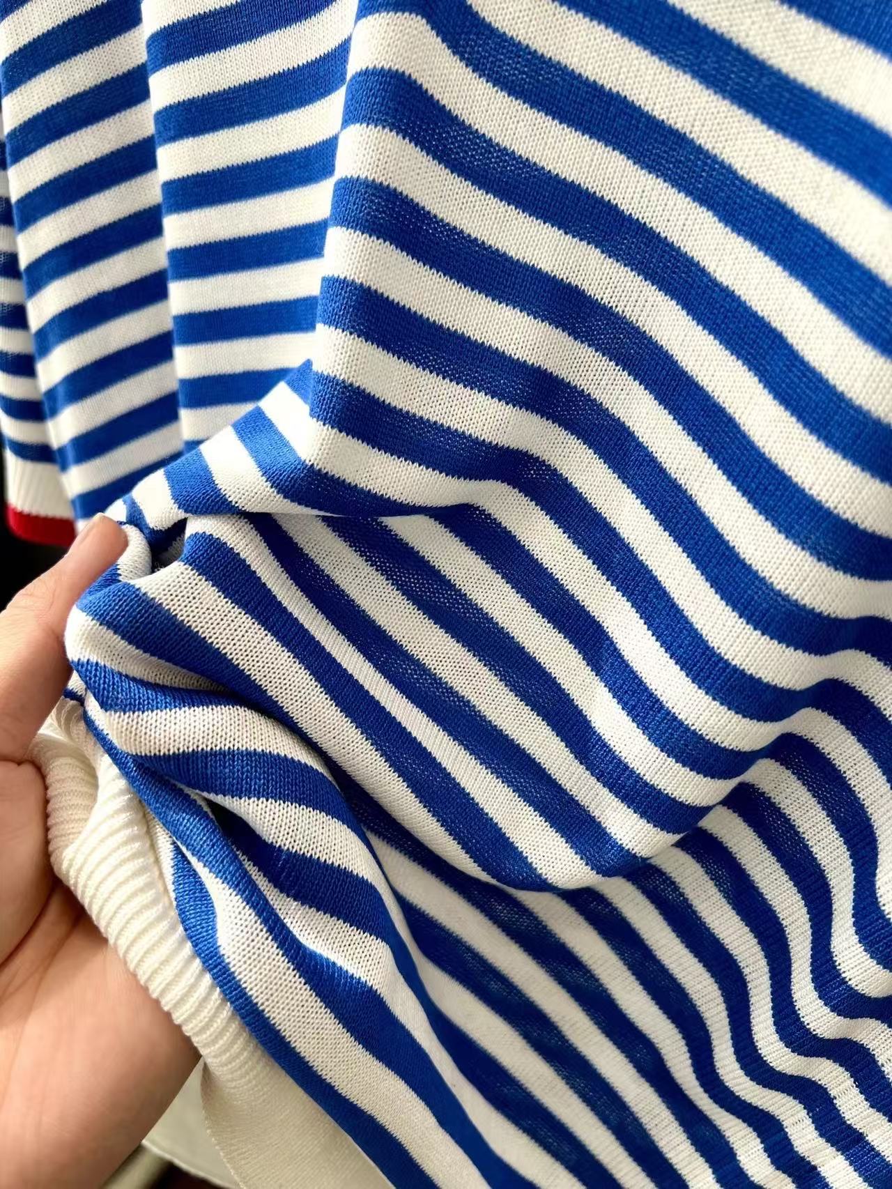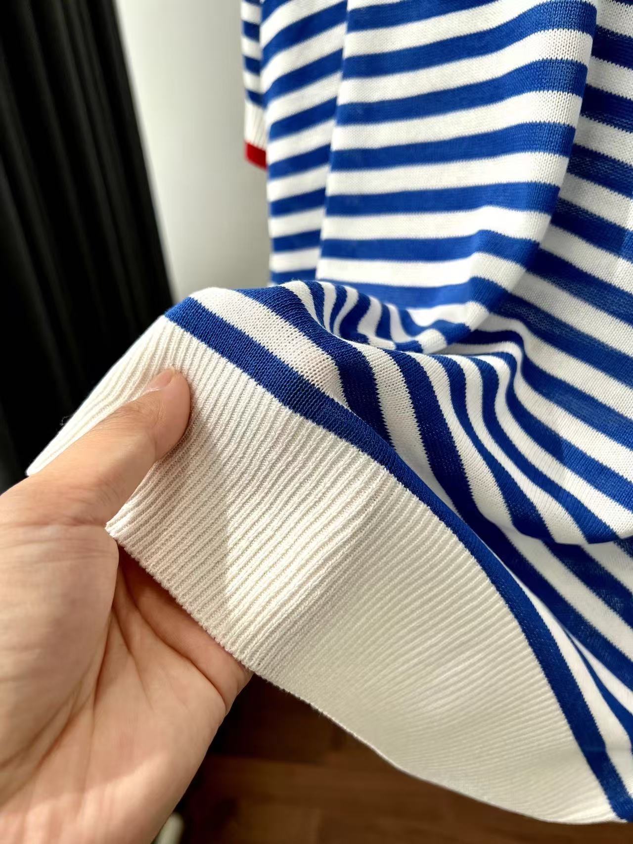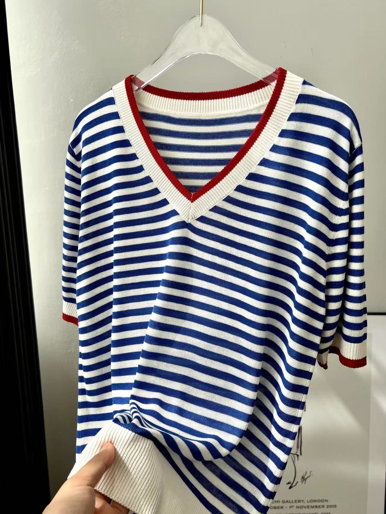 *【显瘦藏肉一绝】板绘法式经典条纹海魂衫 冰爽丝T恤 蓝白相撞永不过时的时髦元素 复古减龄优雅 凉爽又舒适