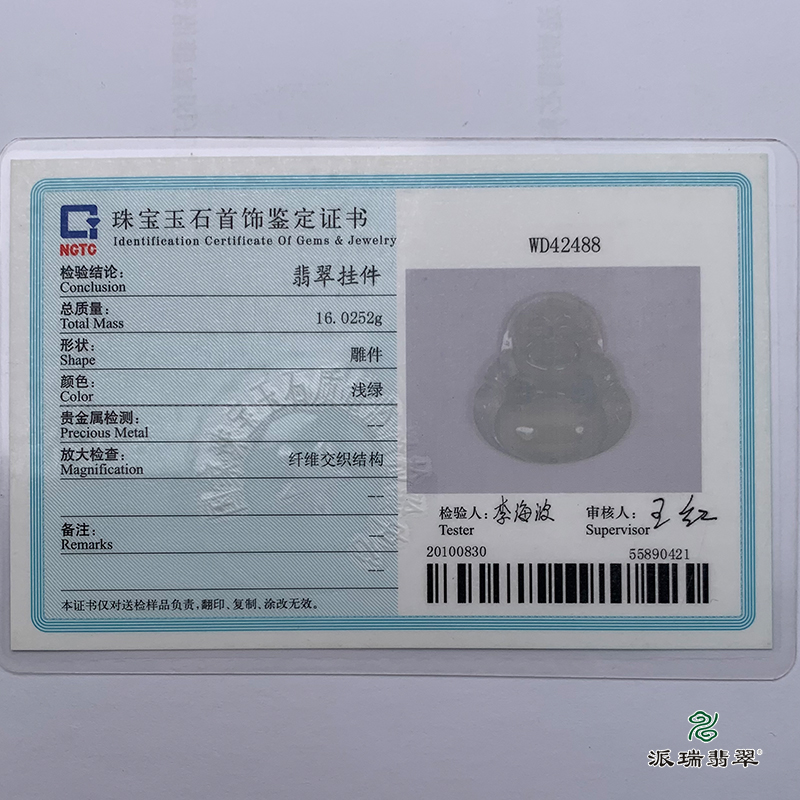派瑞翡翠 18k金翡翠吊坠 冰种 满绿