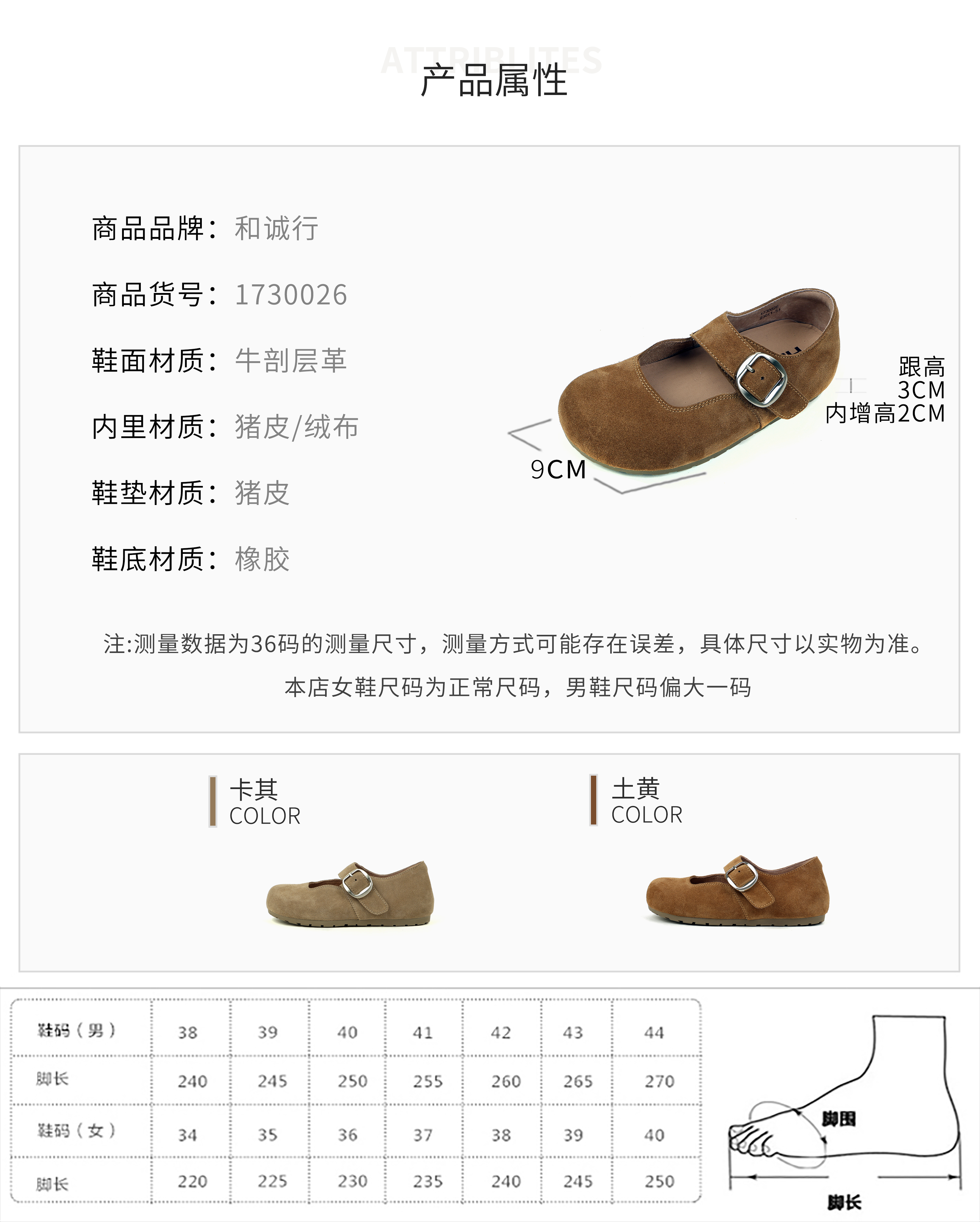 和诚行2026春季新款时尚舒适百搭软皮软底勃肯鞋1730026