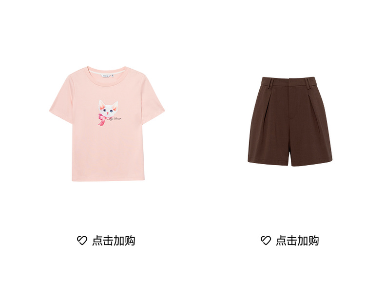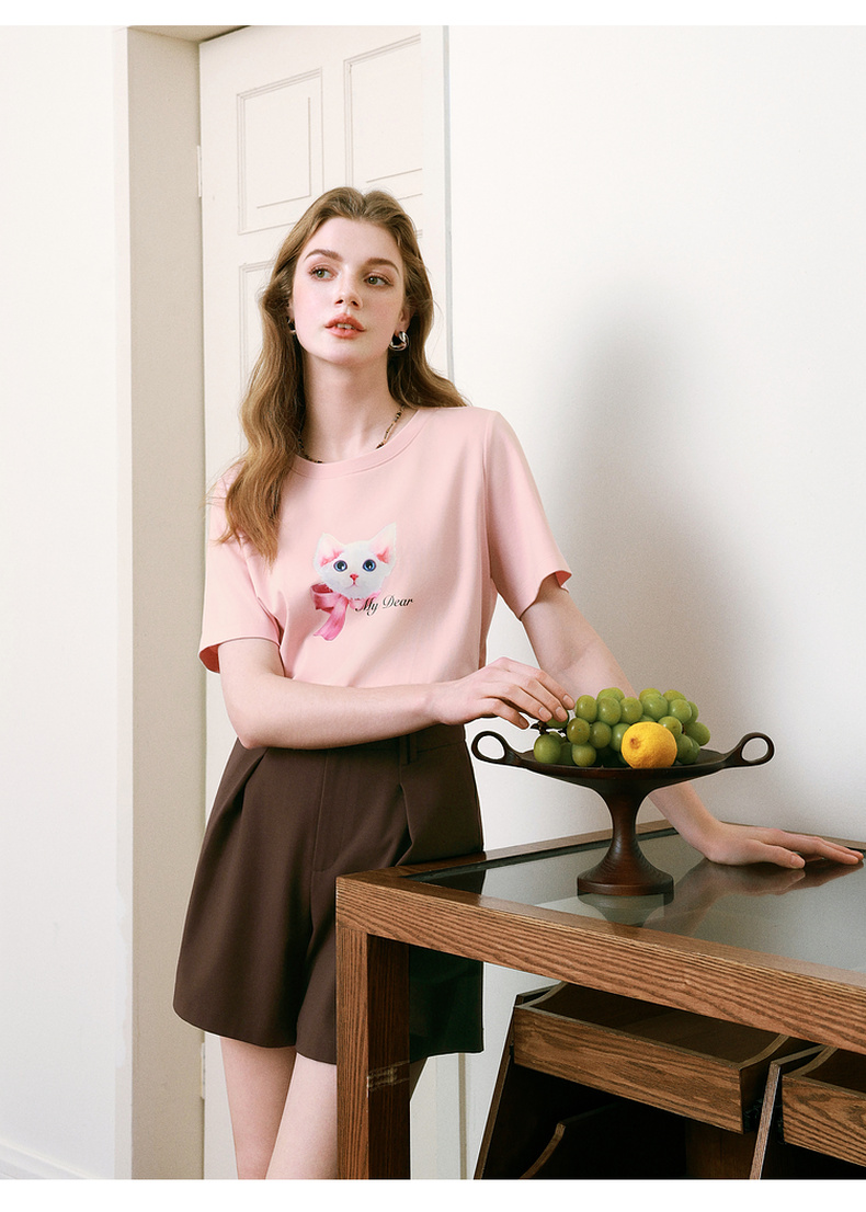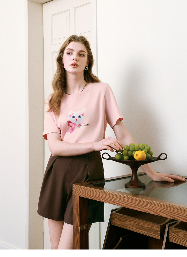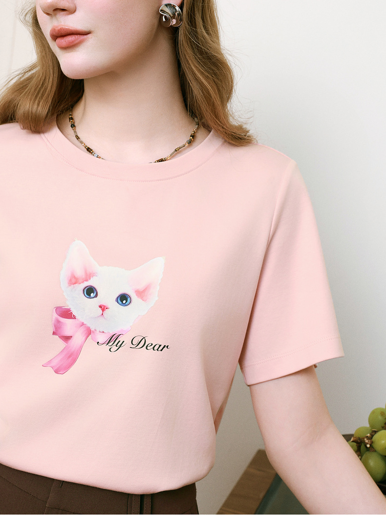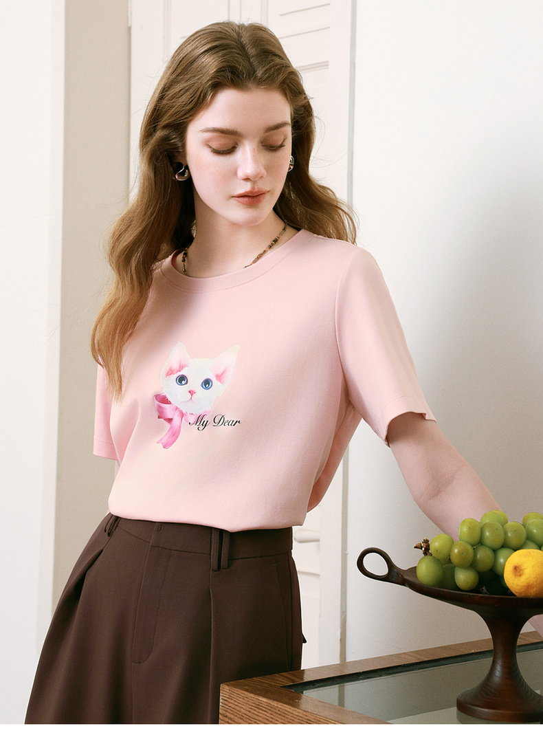 【商场同款】诗凡黎猫咪印花T恤2025夏季新款纯棉短袖女3G5100811