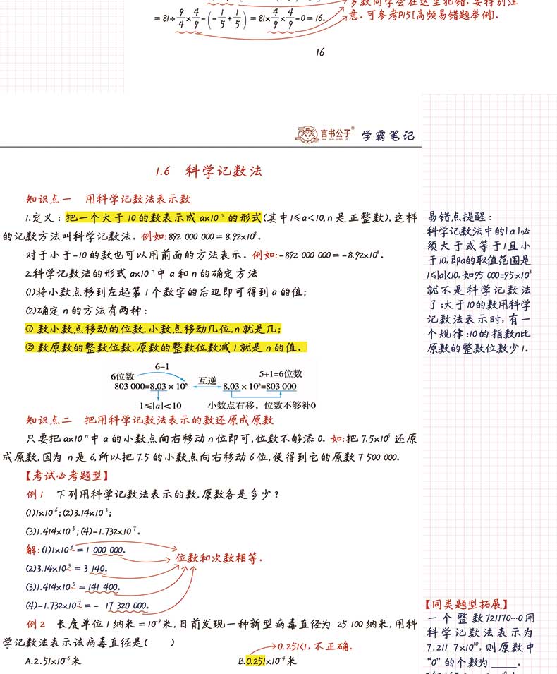 学霸笔记手写初中数学衡水中学状元辅导书初三下册数学物理化学生物语文英语七八九年级初一初二总复习资料书