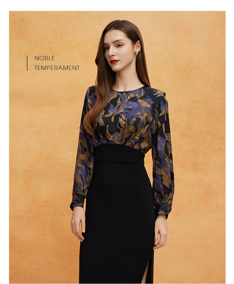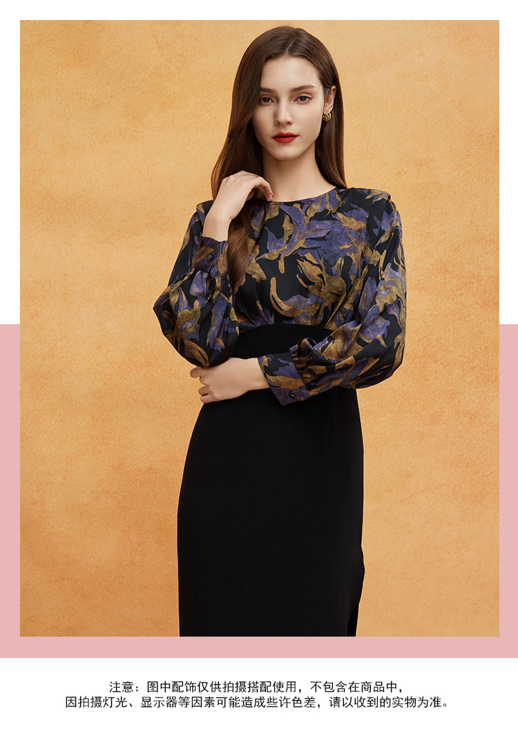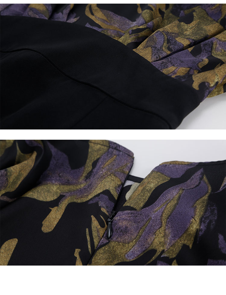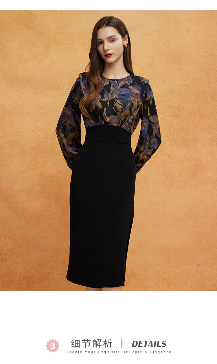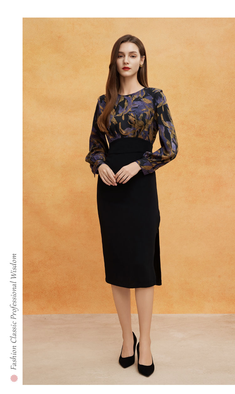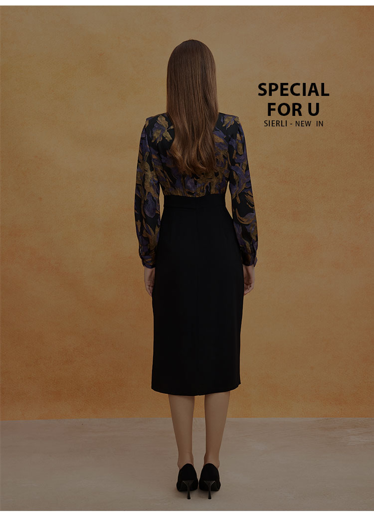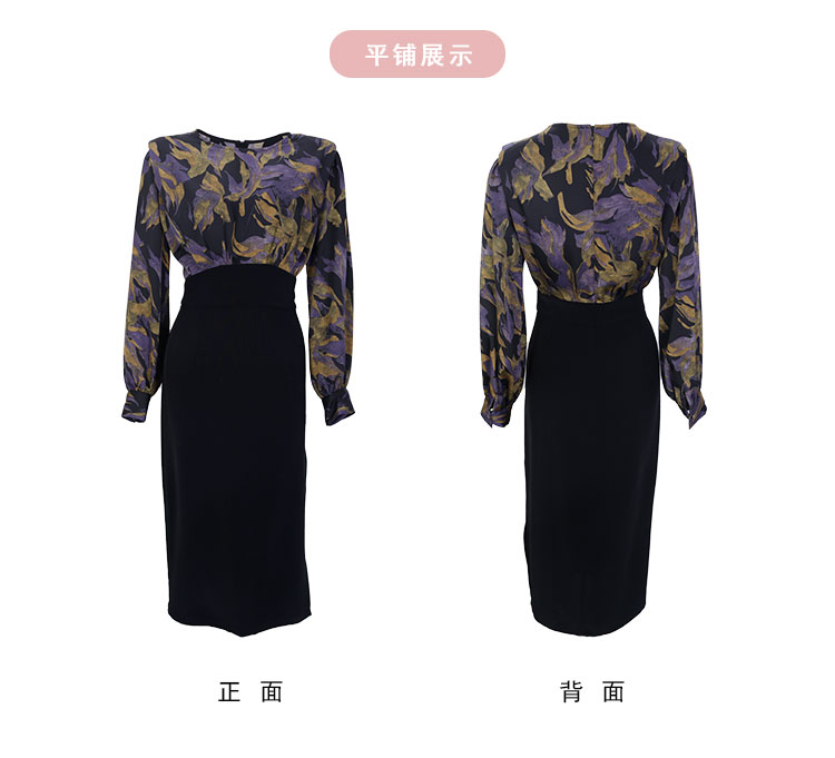QE824斯尔丽2025春季新款韩版立体肩型时尚印花拼接修身半裙连衣裙