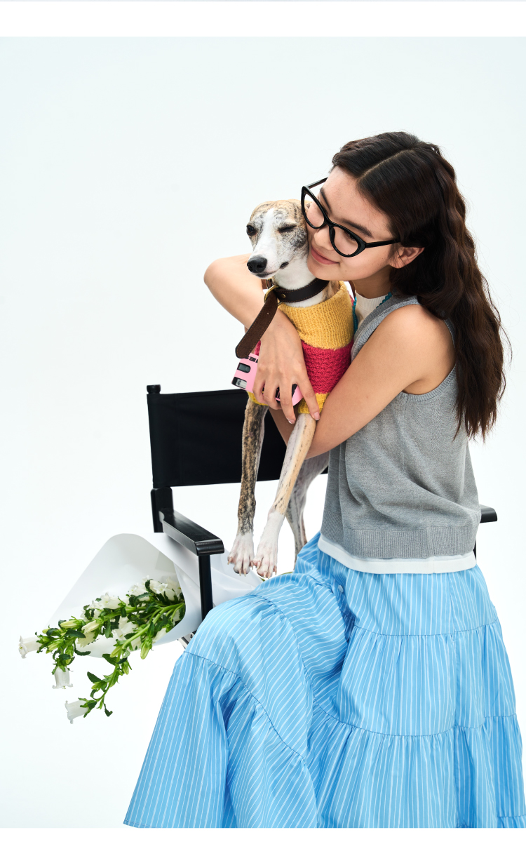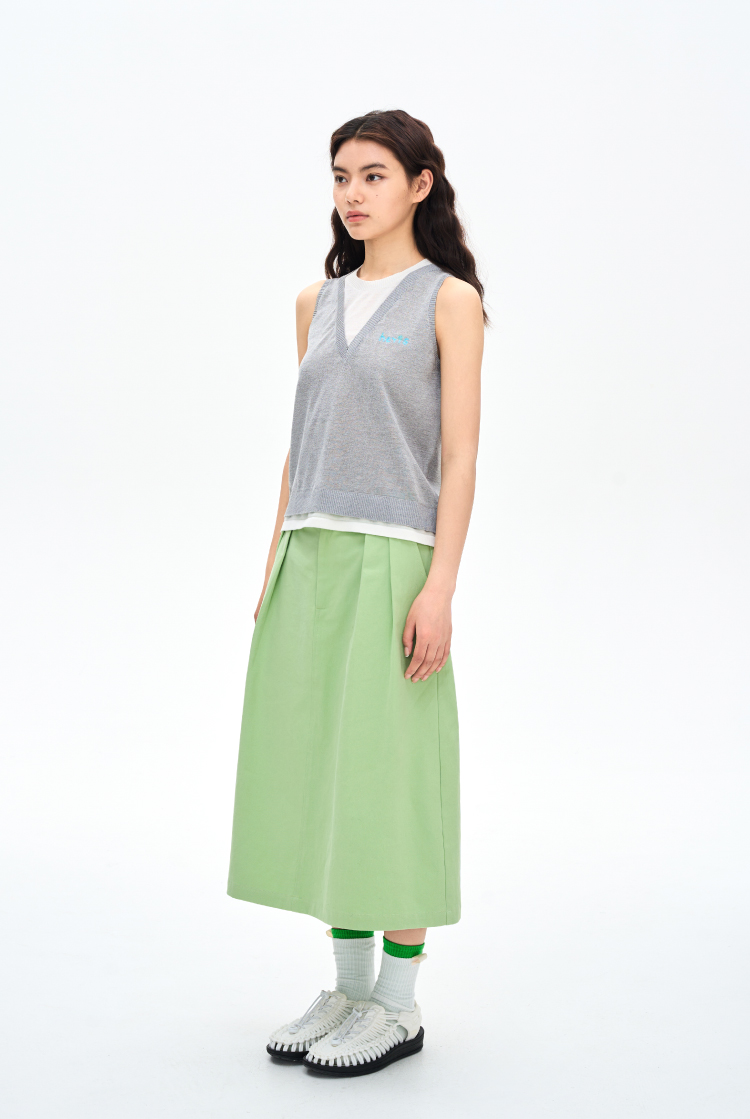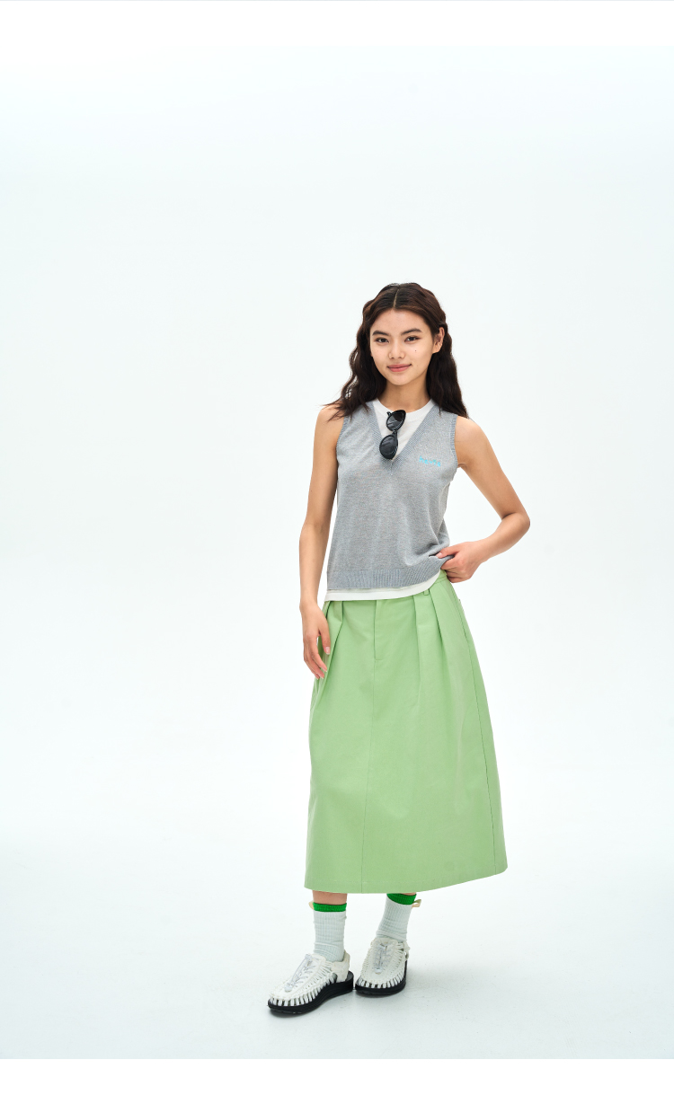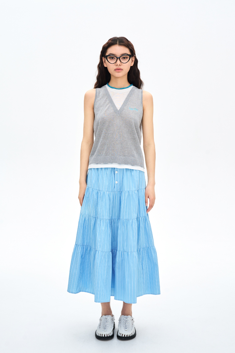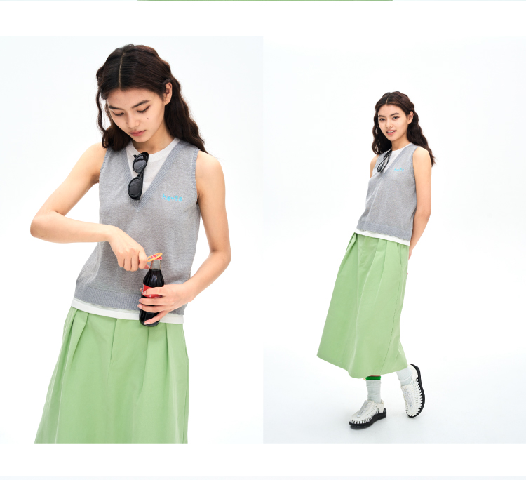 heris/H42122/灰白色假两件设计 亚麻混纺凉感纱线 V领叠穿针织马甲