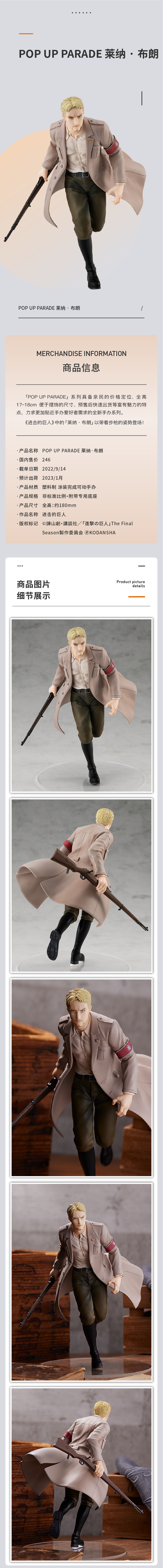 【GSC现货】POP UP PARADE 莱纳·布朗 进击的巨人 手办模玩周边