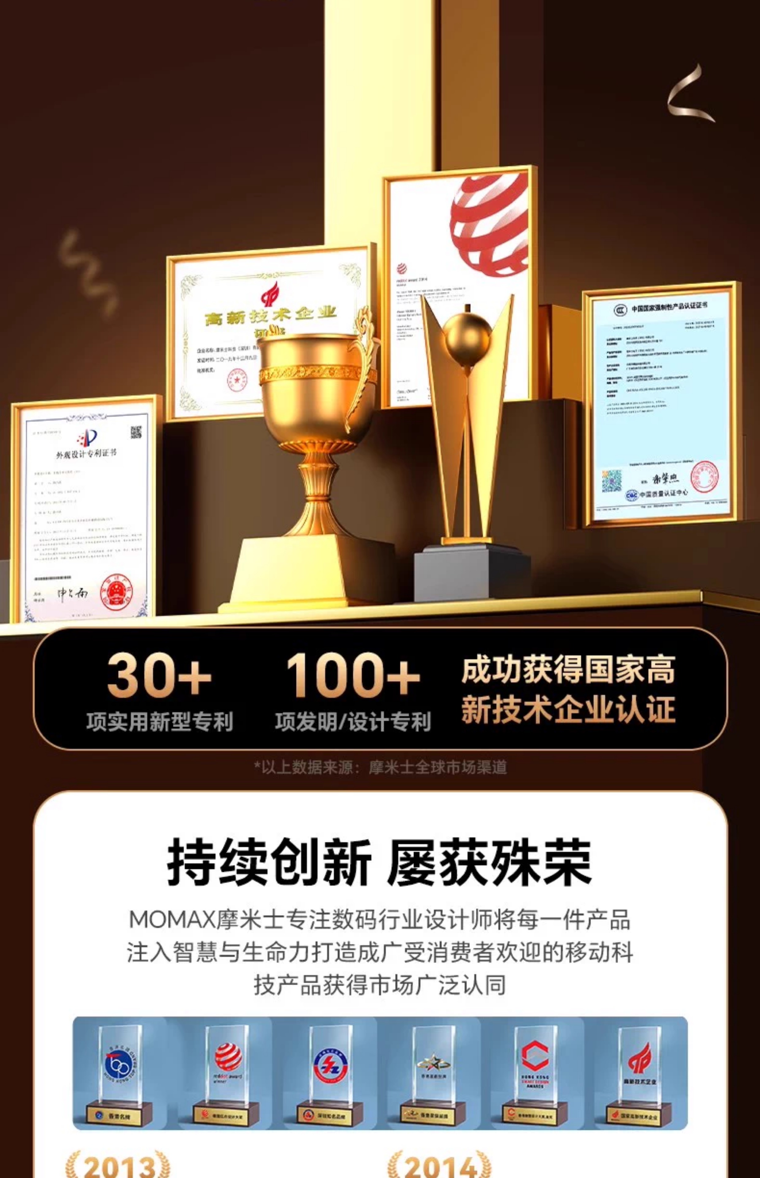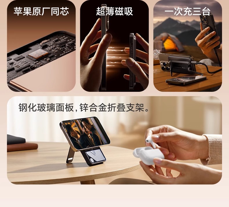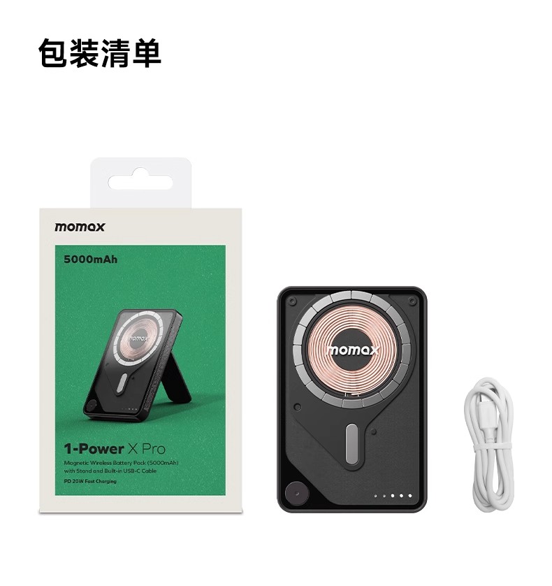 【3C认证充电宝】MOMAX摩米士磁吸无线充电宝自带线20W自带支架可上飞机超级快充超薄小巧便携适用苹果