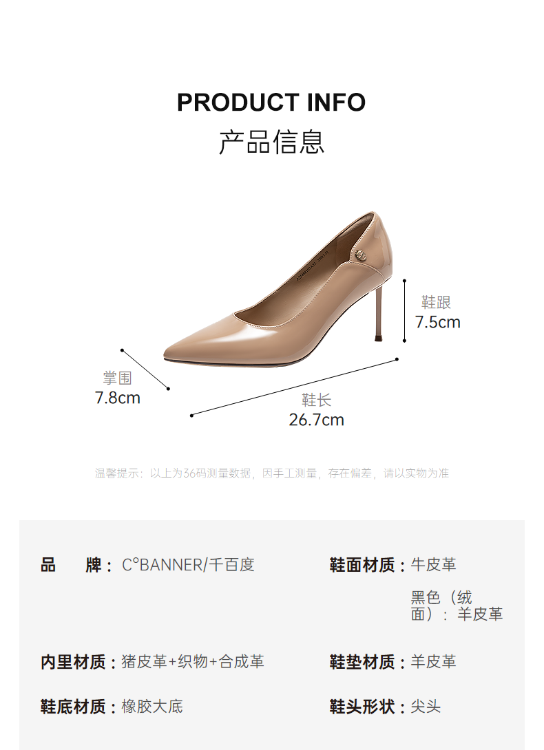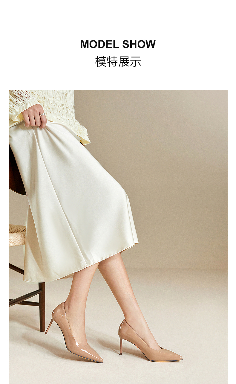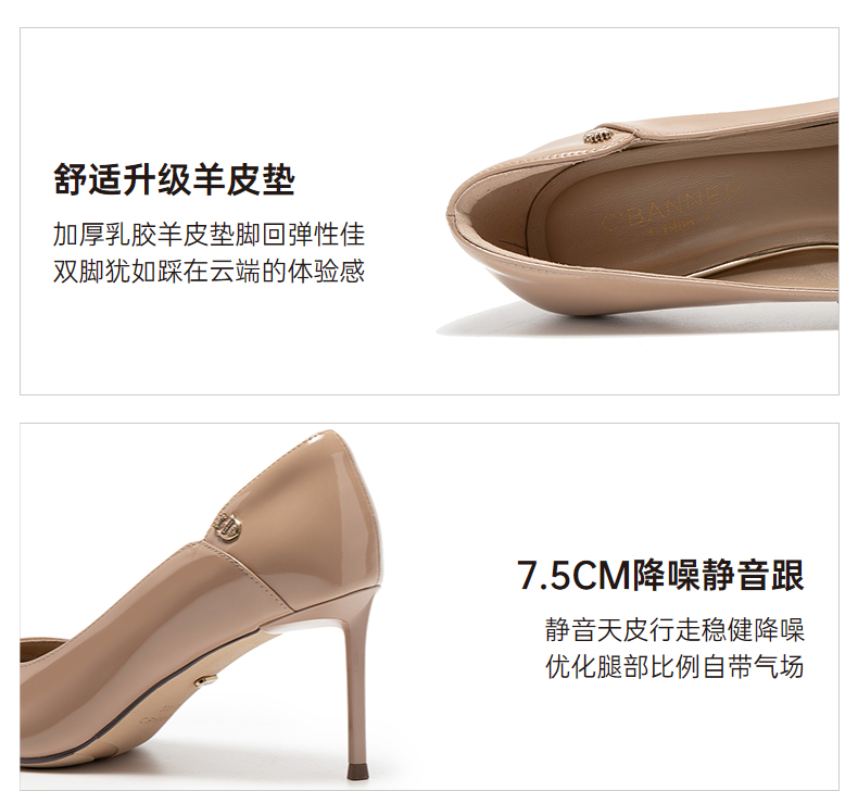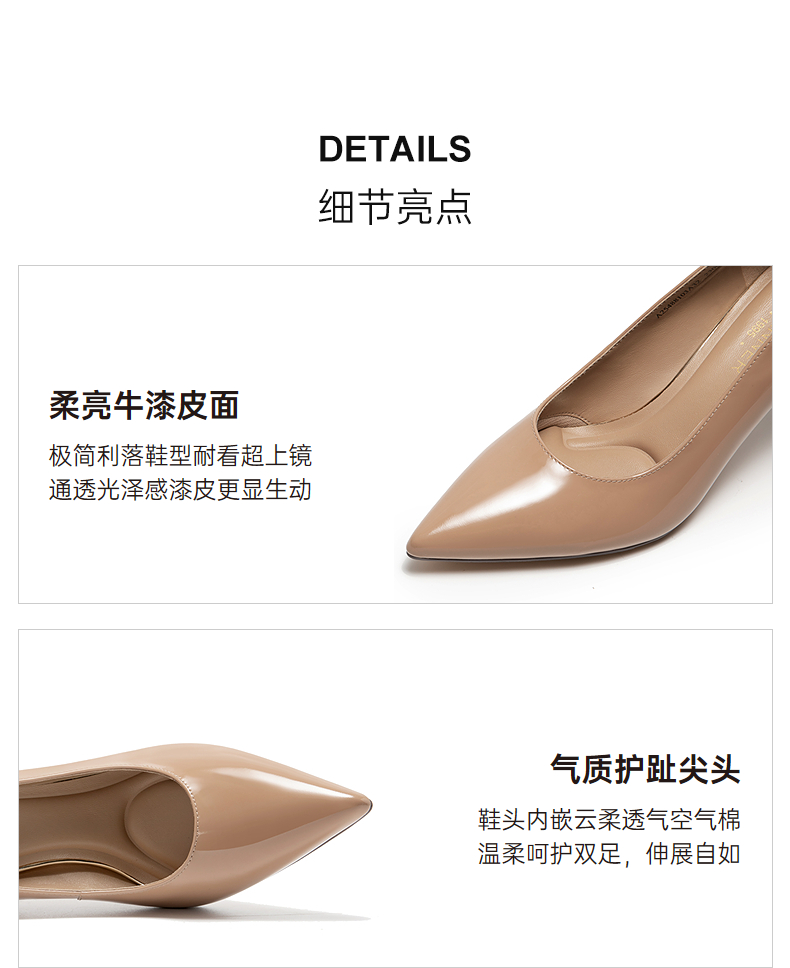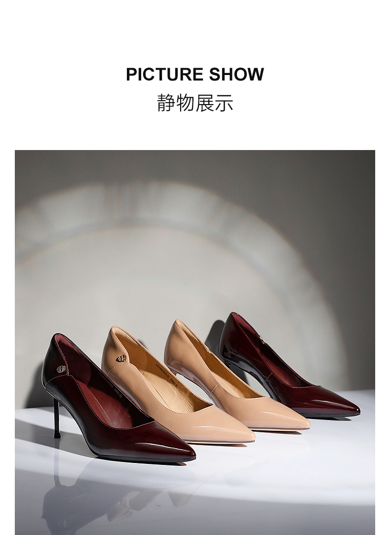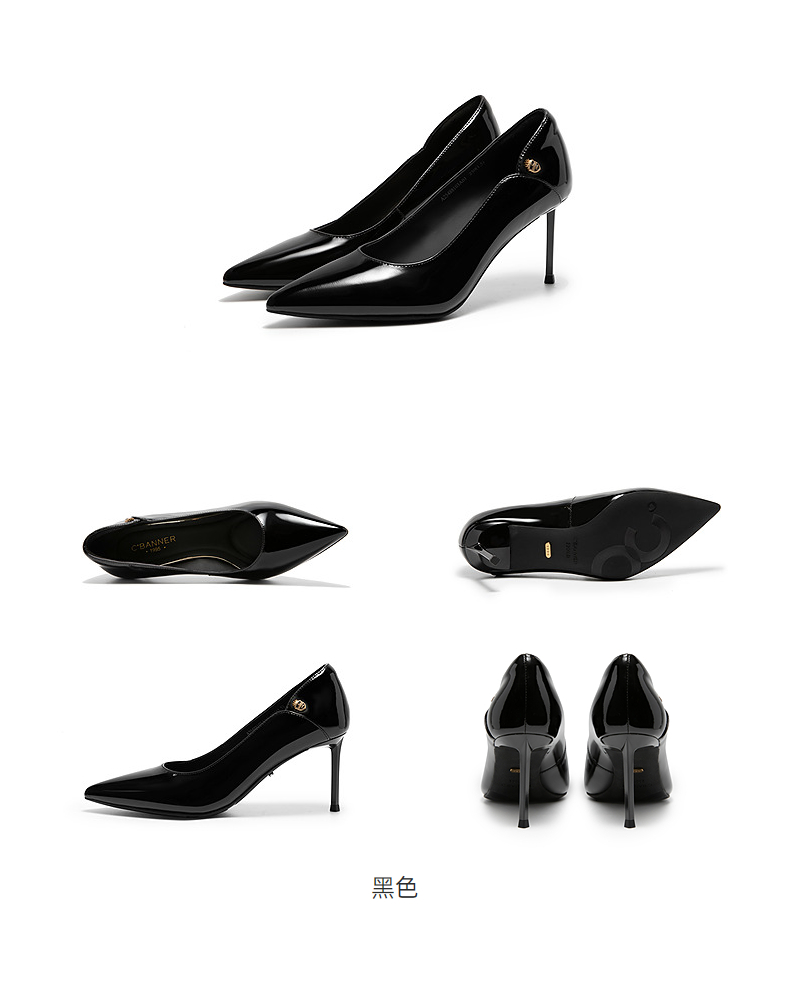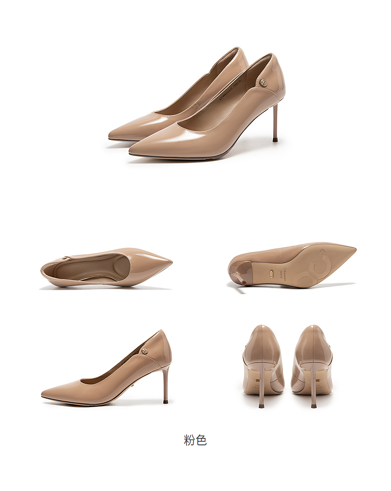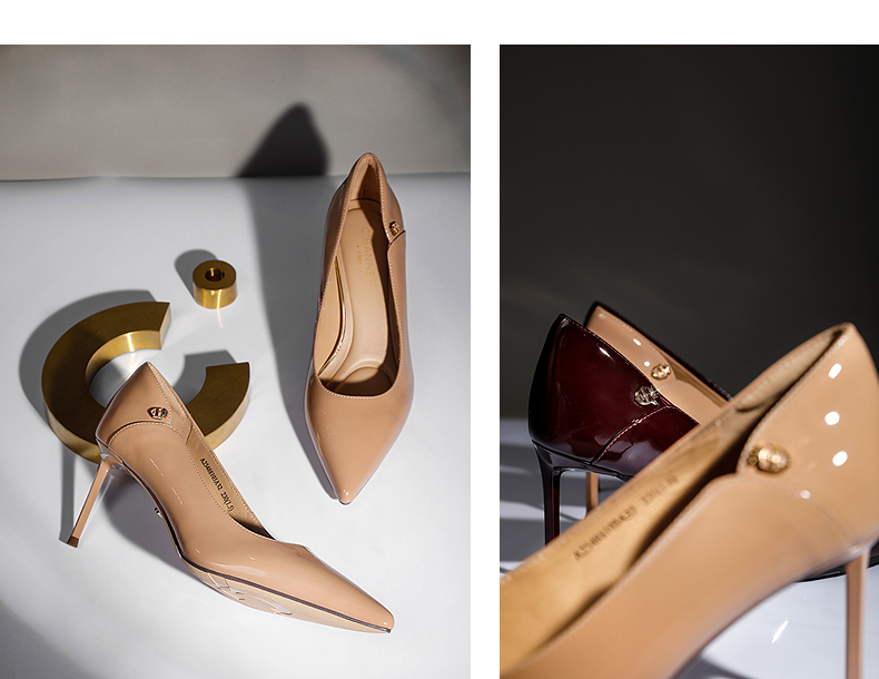千百度漆皮静音细高跟鞋女秋新款羊皮法式单鞋A25488103