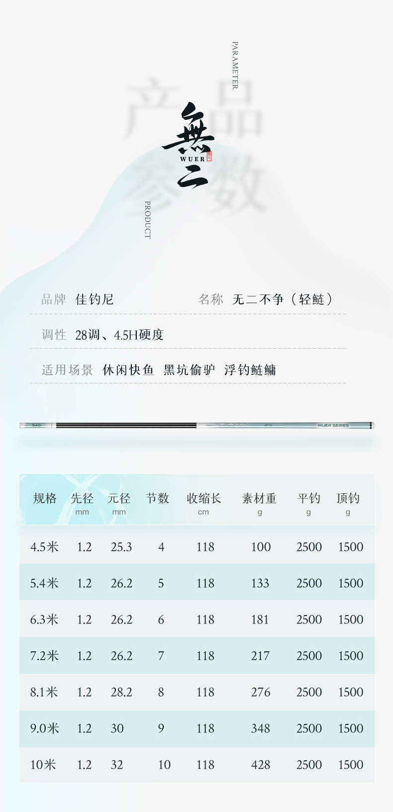 佳钓尼无二不争轻量鱼竿大物台钓竿鲢鳙鱼竿超轻超硬强力钓鱼竿