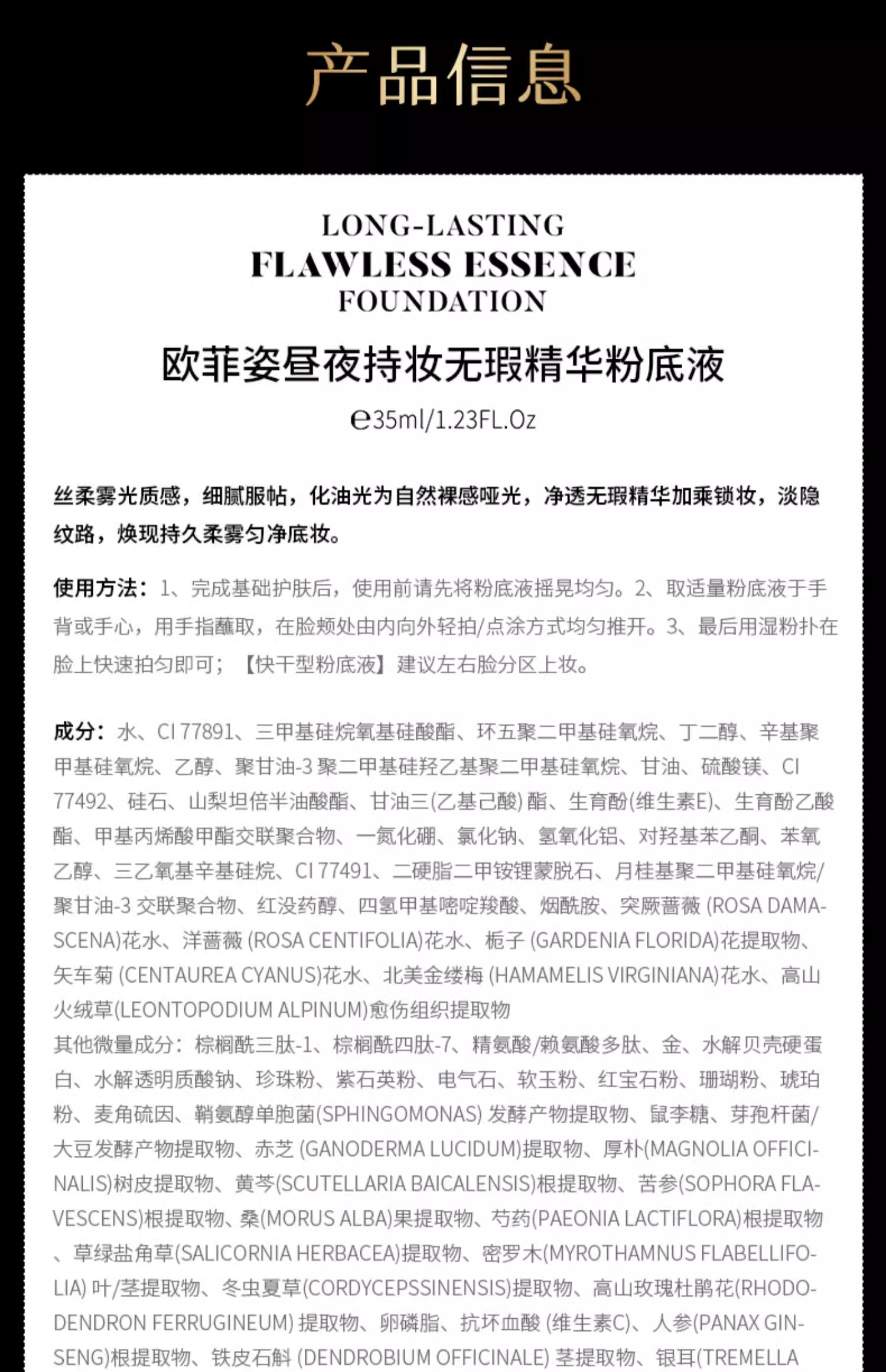 欧菲姿持妆小灯泡昼夜持妆无瑕精华粉底液35ml控油保湿