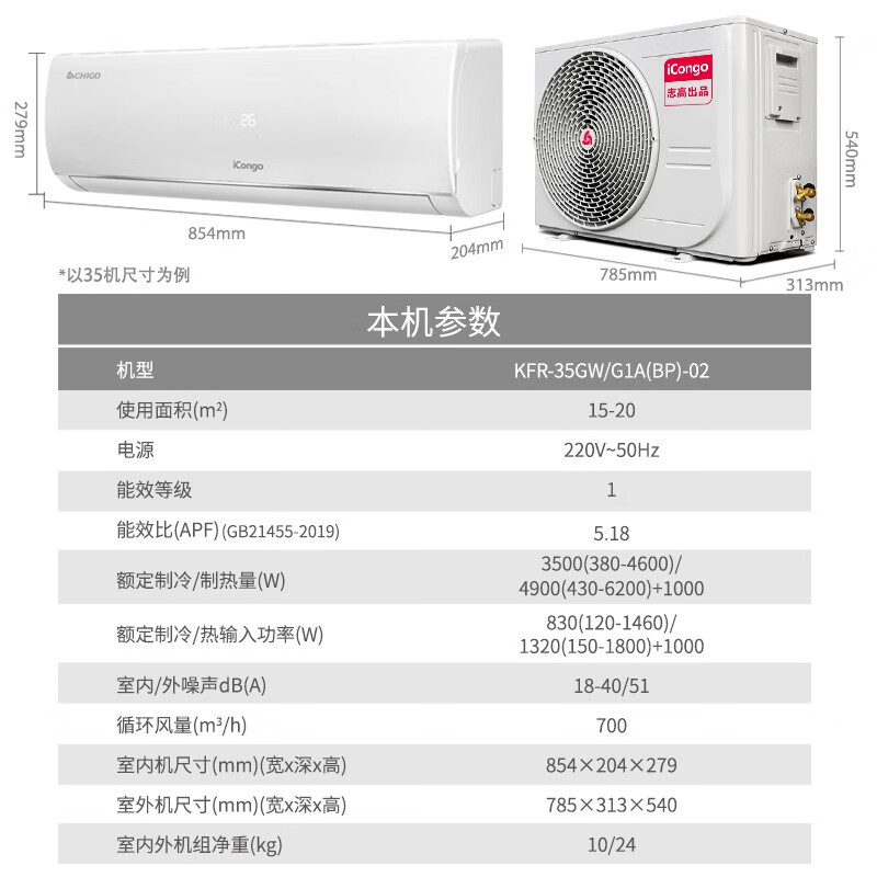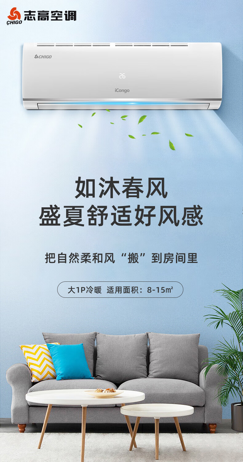 志高(CHIGO)KFR-26GW/KFR-35GW G1A(BP)-02 空调挂机冷暖一级变频家用卧室壁挂式节能轻音