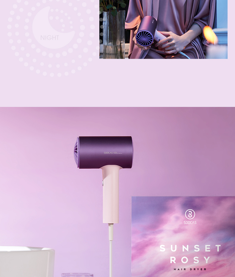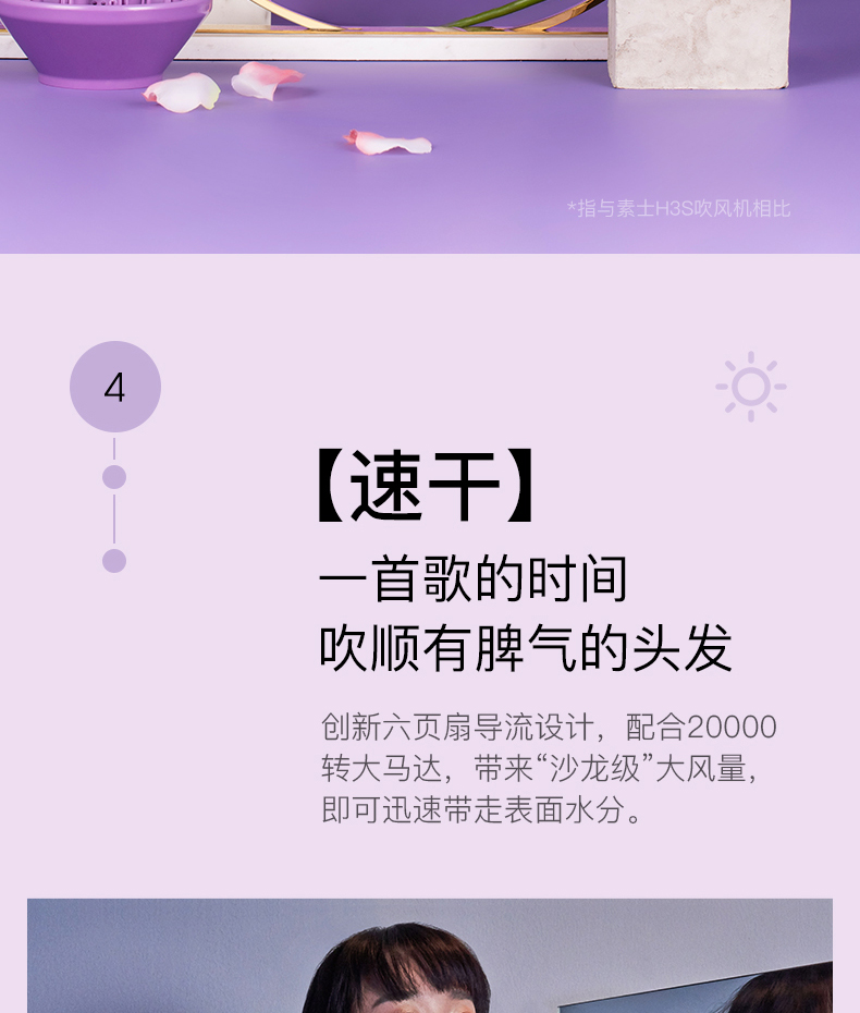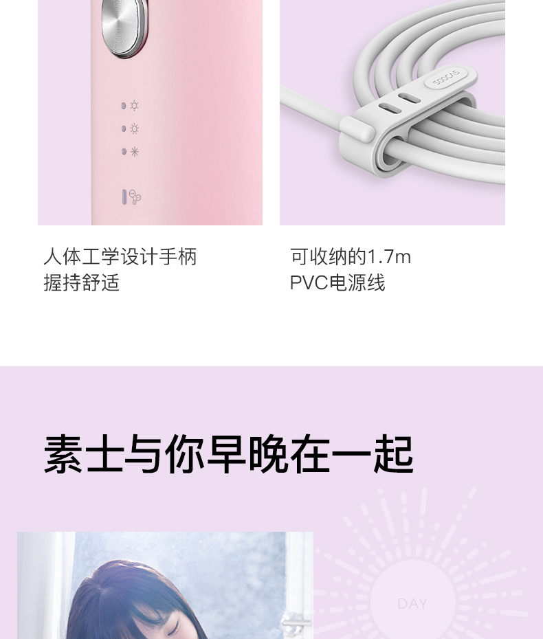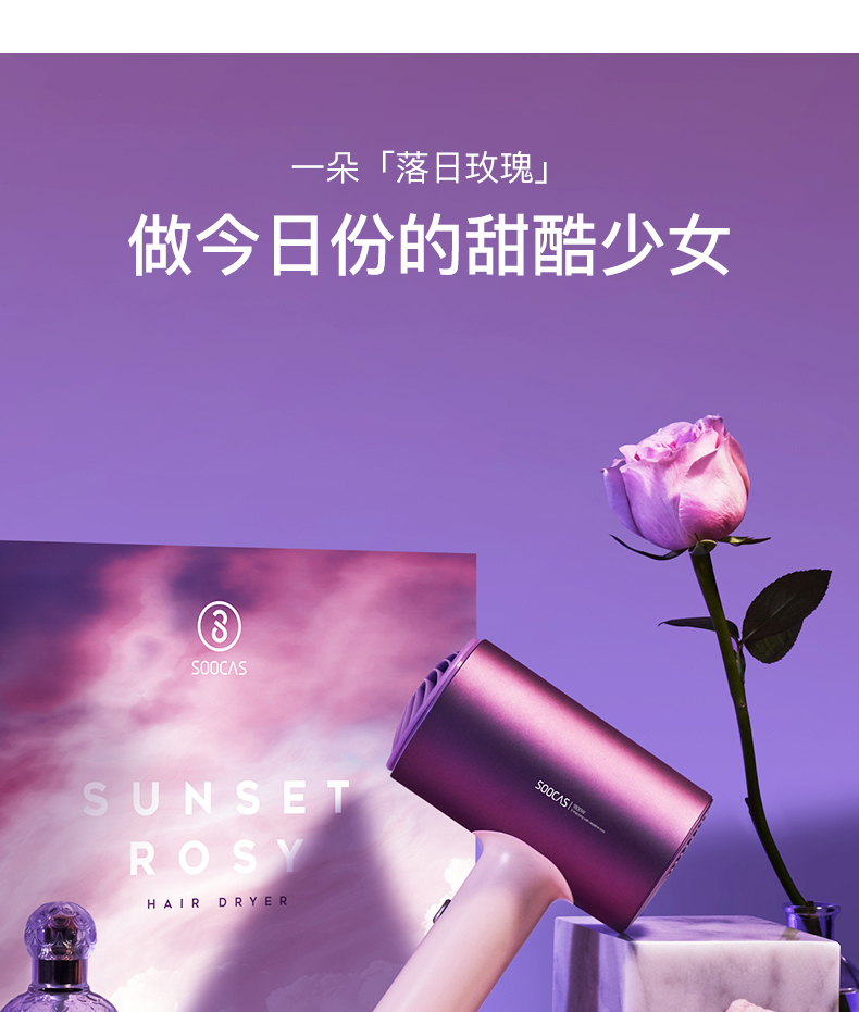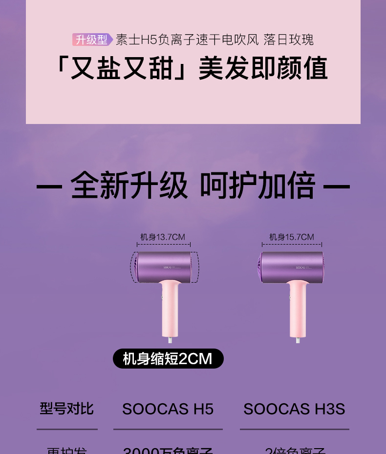 素士负离子护发吹风机2020年升级版H5落日玫瑰礼盒装家用大功率速干不伤发
