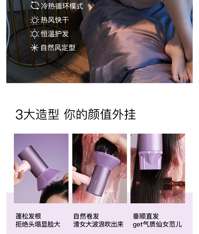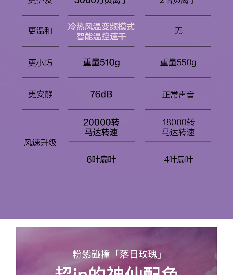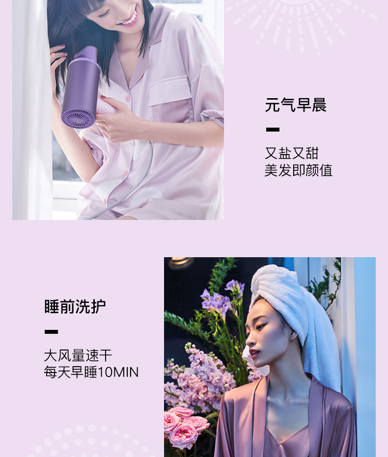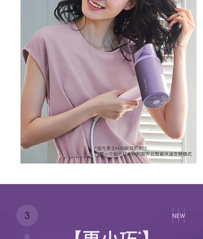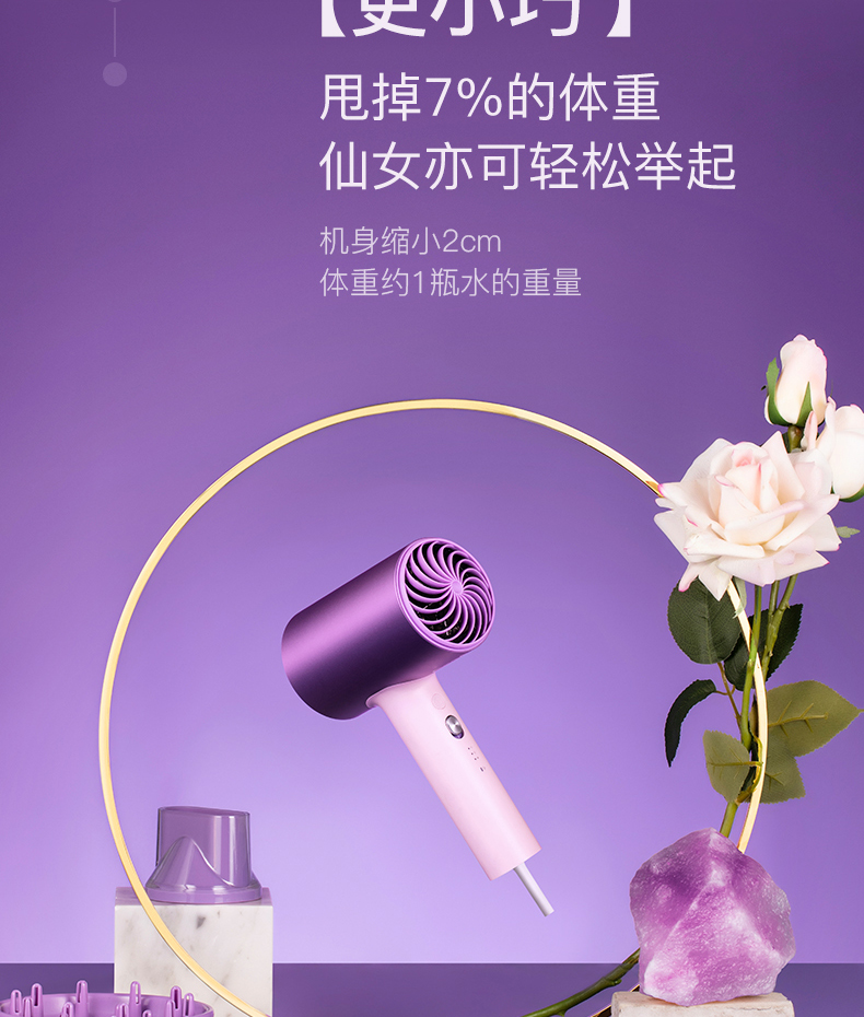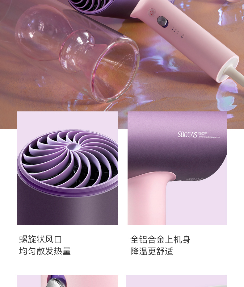 素士负离子护发吹风机2020年升级版H5落日玫瑰礼盒装家用大功率速干不伤发