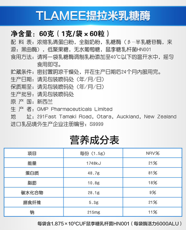 提拉米乳糖酶婴幼儿童酸性乳糖酶不耐受宝宝拉肚子奶伴侣调制乳粉60袋