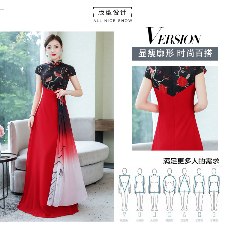 改良显瘦旗袍长款大合唱团长裙礼服走秀表演出服 KY-5283