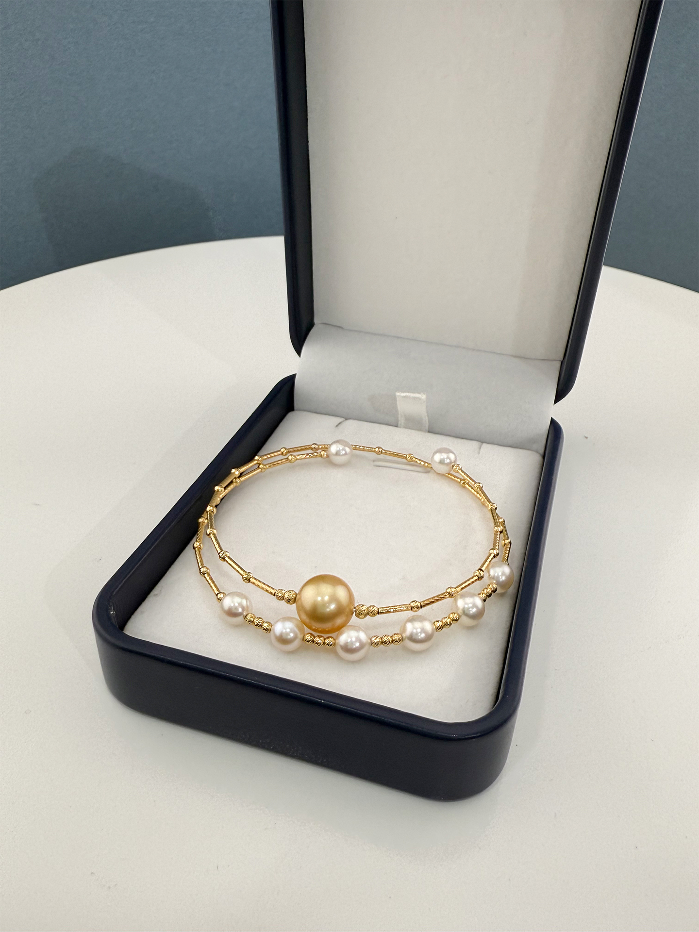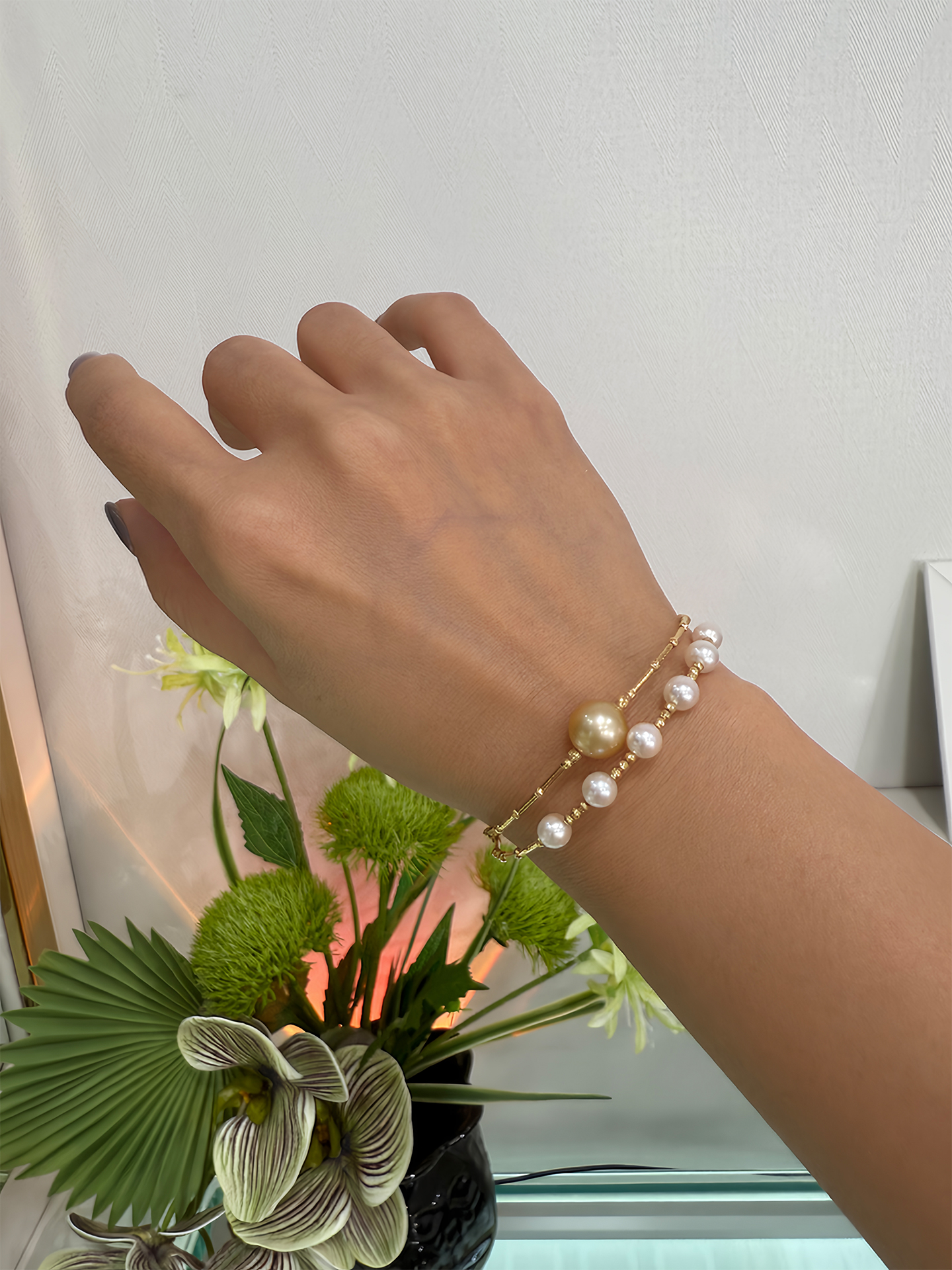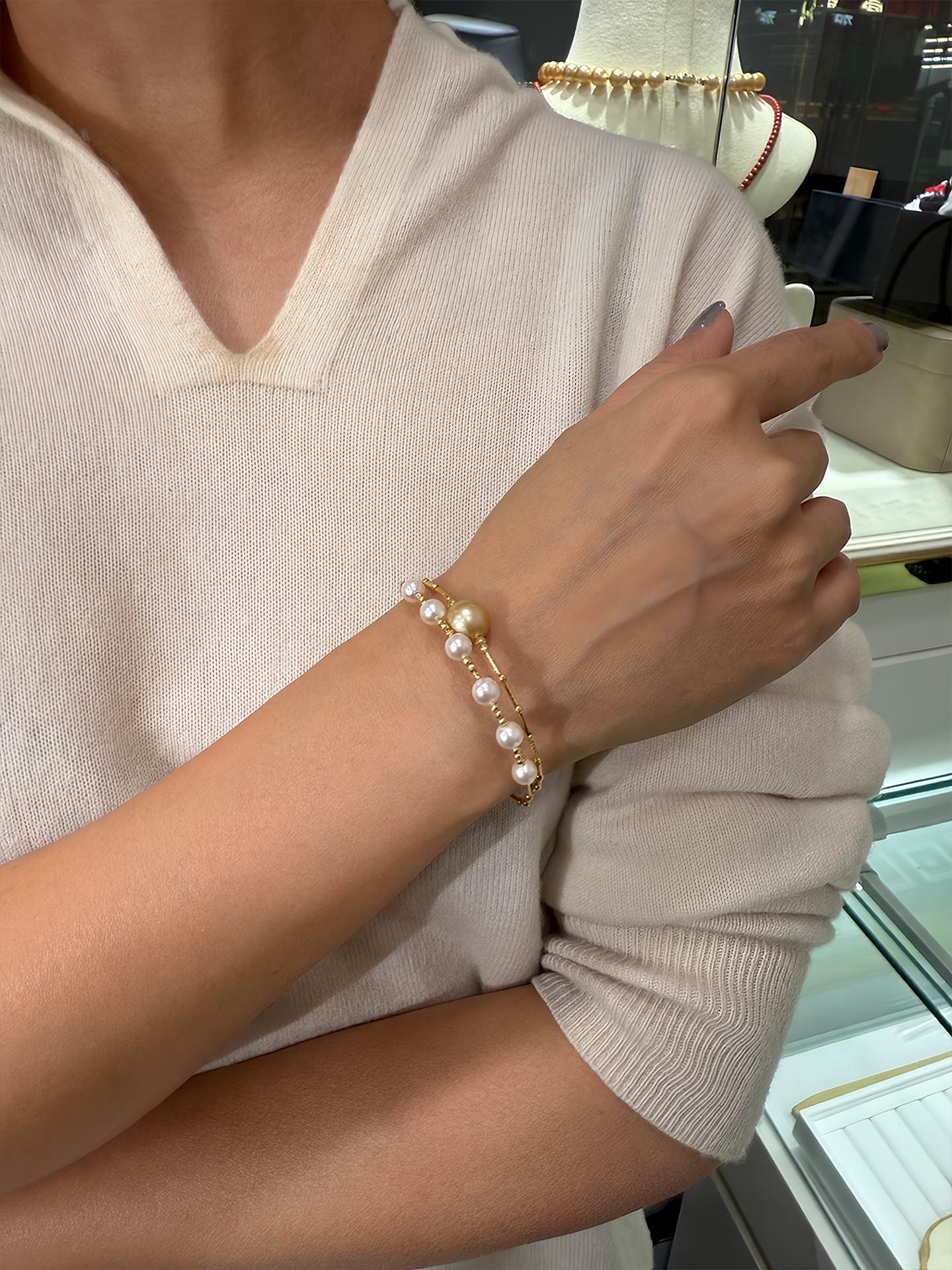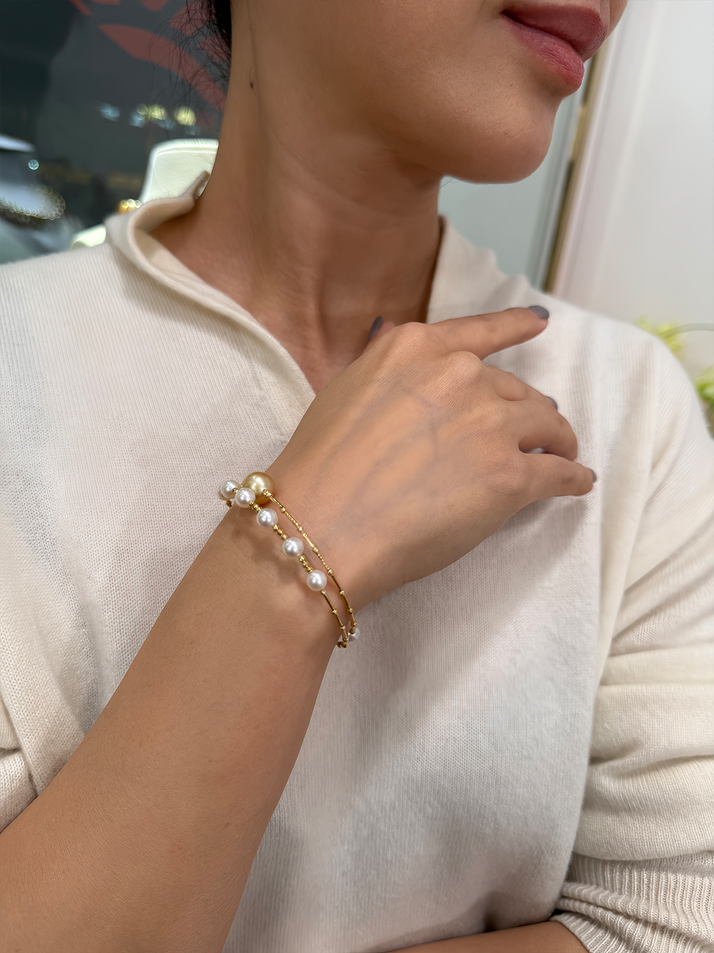 【挚友限定】竹节-18k金akoya/金珠海水珍珠手镯 5-10mm