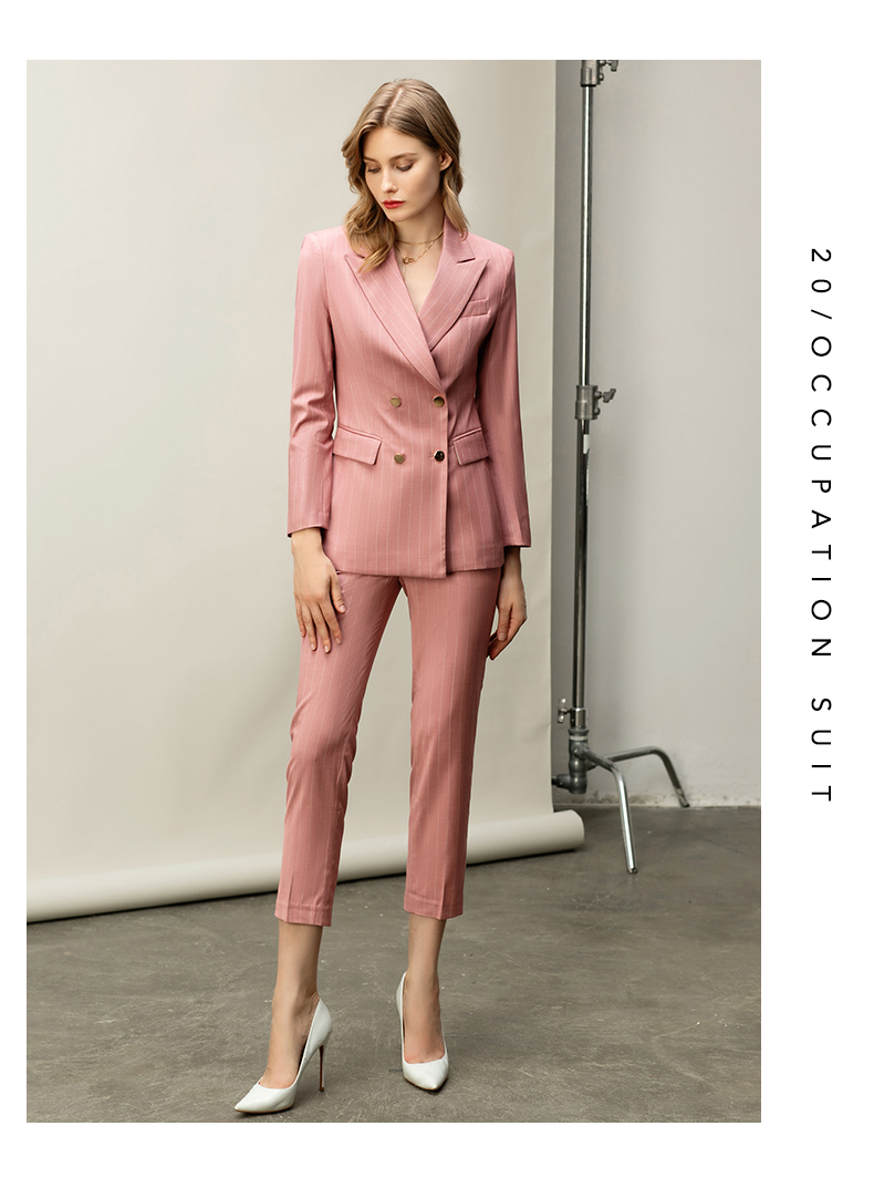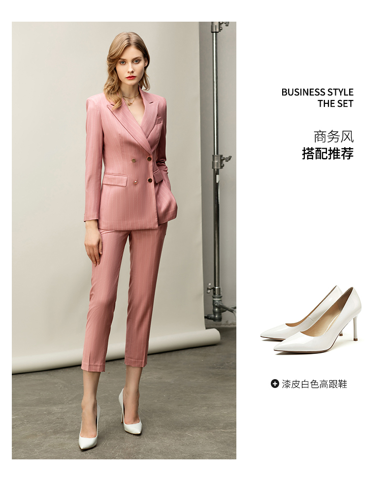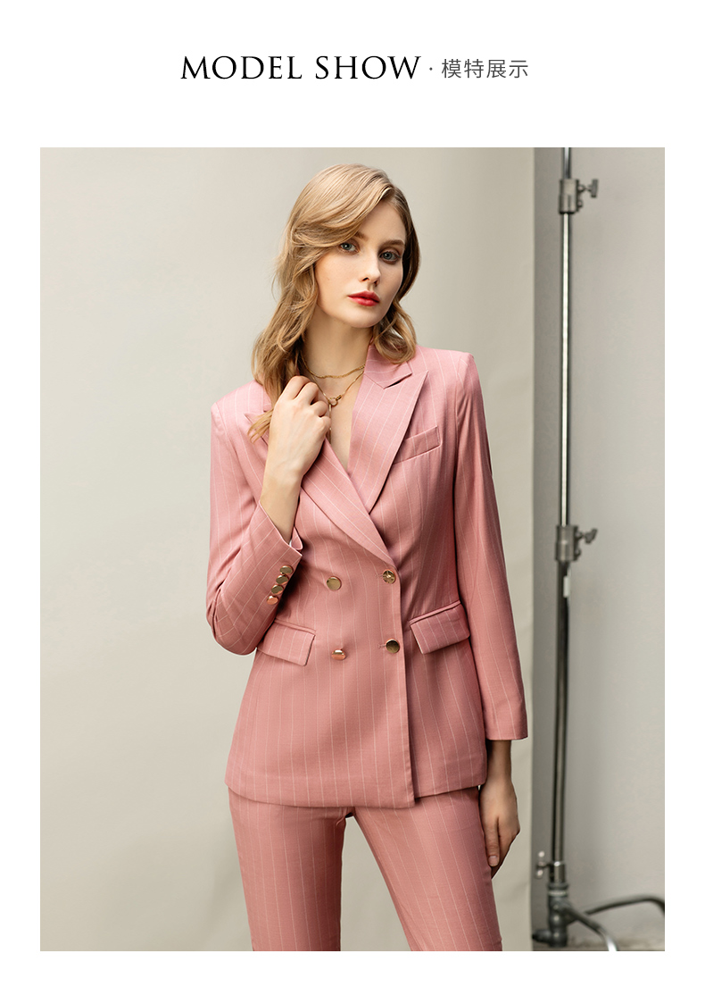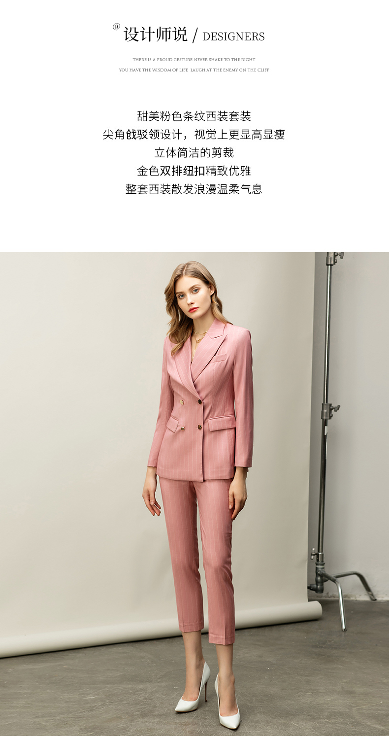 粉色白条纹都市时尚职场套装白领西服西装套装CP10334