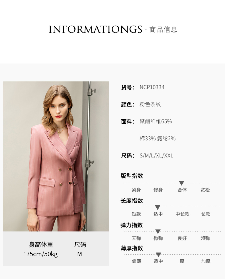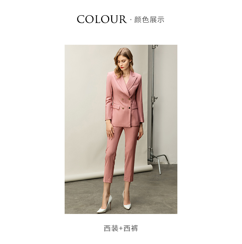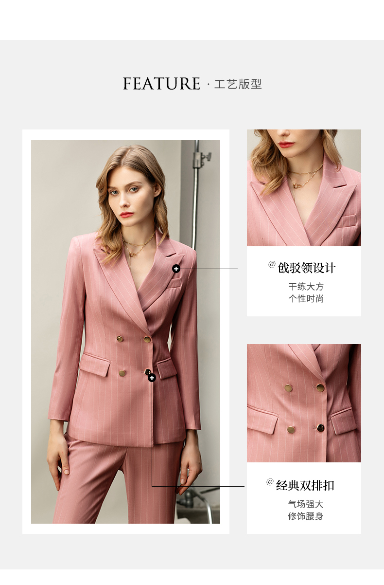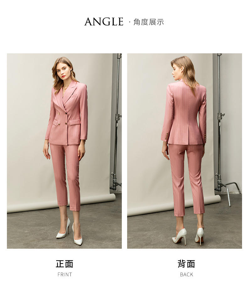 粉色白条纹都市时尚职场套装白领西服西装套装CP10334