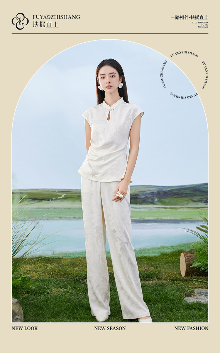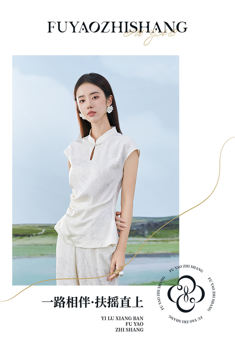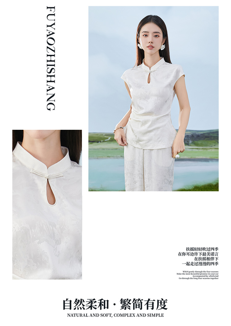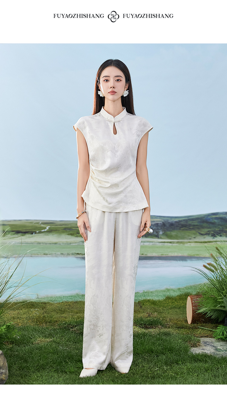 IWY/扶摇系列 杏色夏季新中式盘扣无袖醋酸衬衫阔腿裤套装24FYBP355